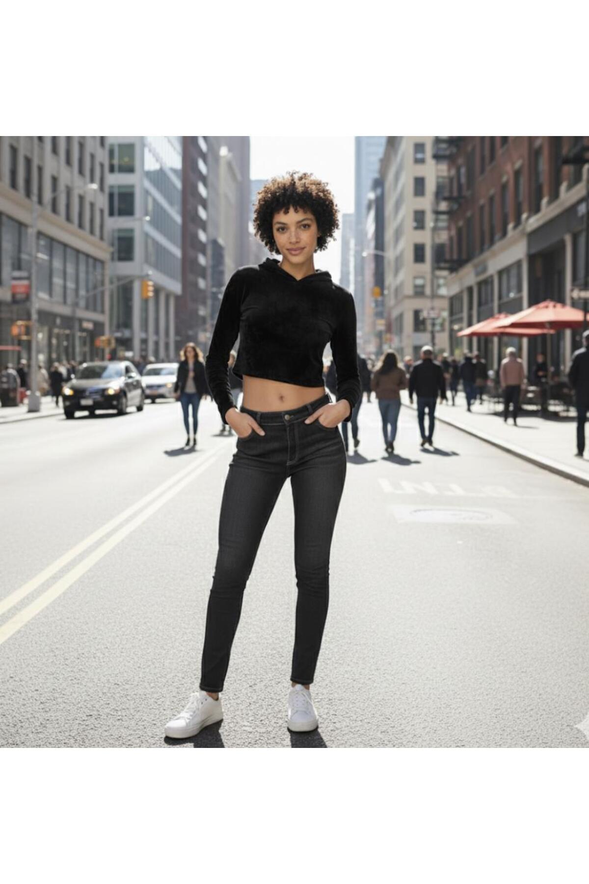 Kadın Yeni Sezon Kapişonlu Yaka Kadife Krop Kadın Yeni Sezon Kapişonlu Yaka Kadife Krop kap15 XL