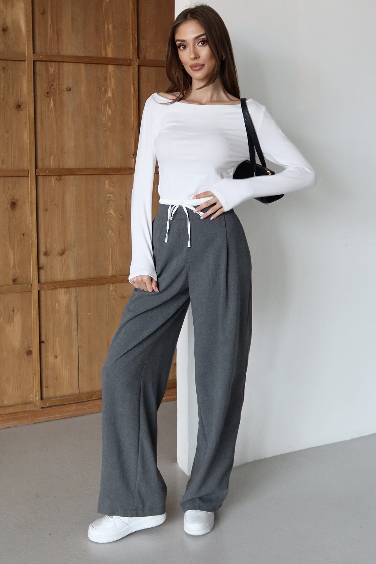 Kadın Antrasit Kemerli Çift Cepli Palazzo Pantolon Vs01484 Kadın Antrasit Kemerli Çift Cepli Palazzo Pantolon Vs01484 VS01484 L