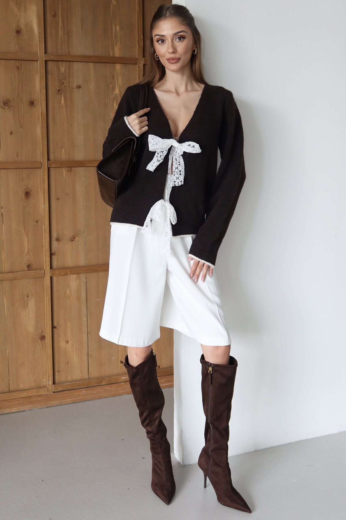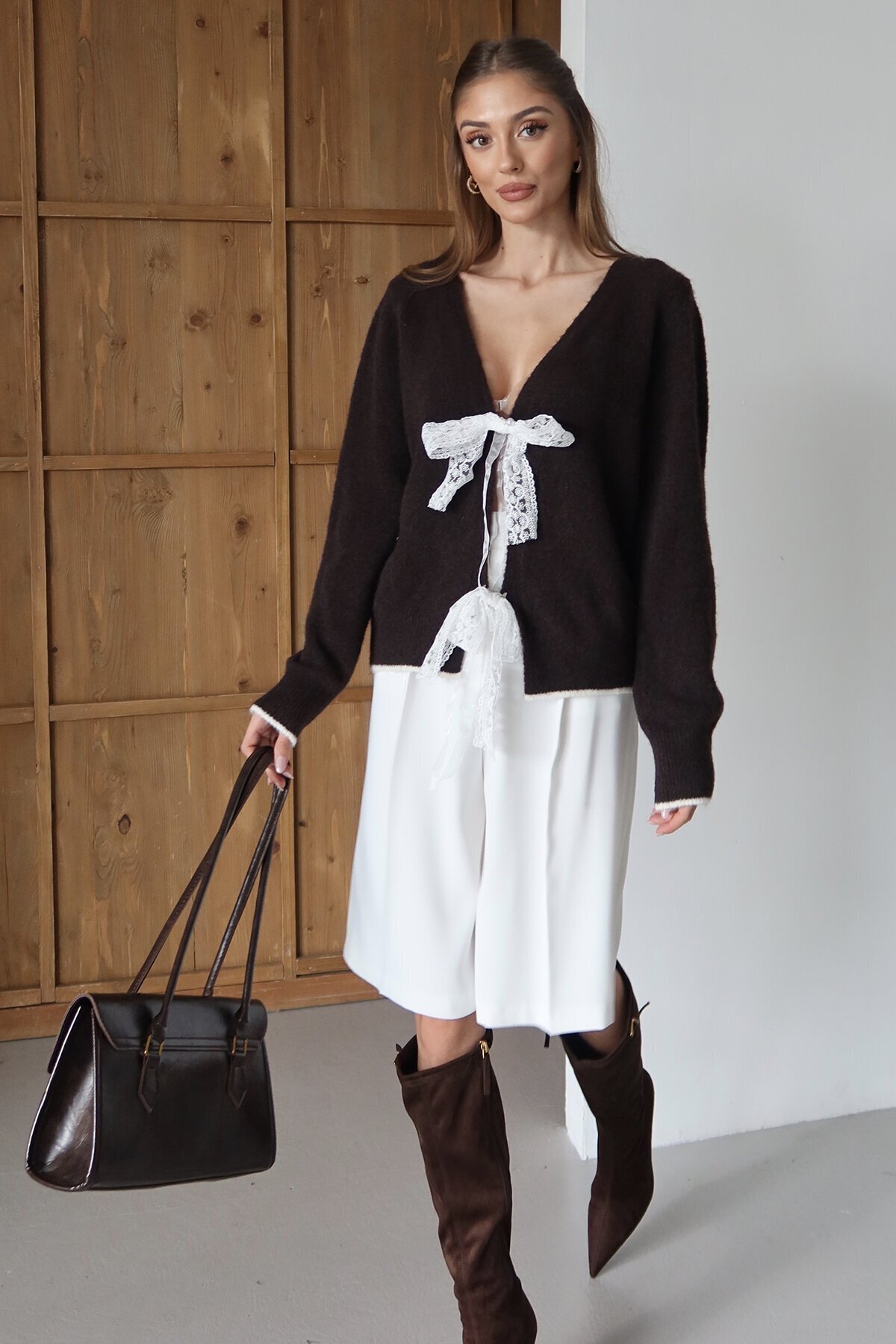 Kadın Acı Kahve Kurdale Bağlamalı V Yaka Triko Bluz Vs01478 Kadın Acı Kahve Kurdale Bağlamalı V Yaka Triko Bluz Vs01478 VS01478 Standart