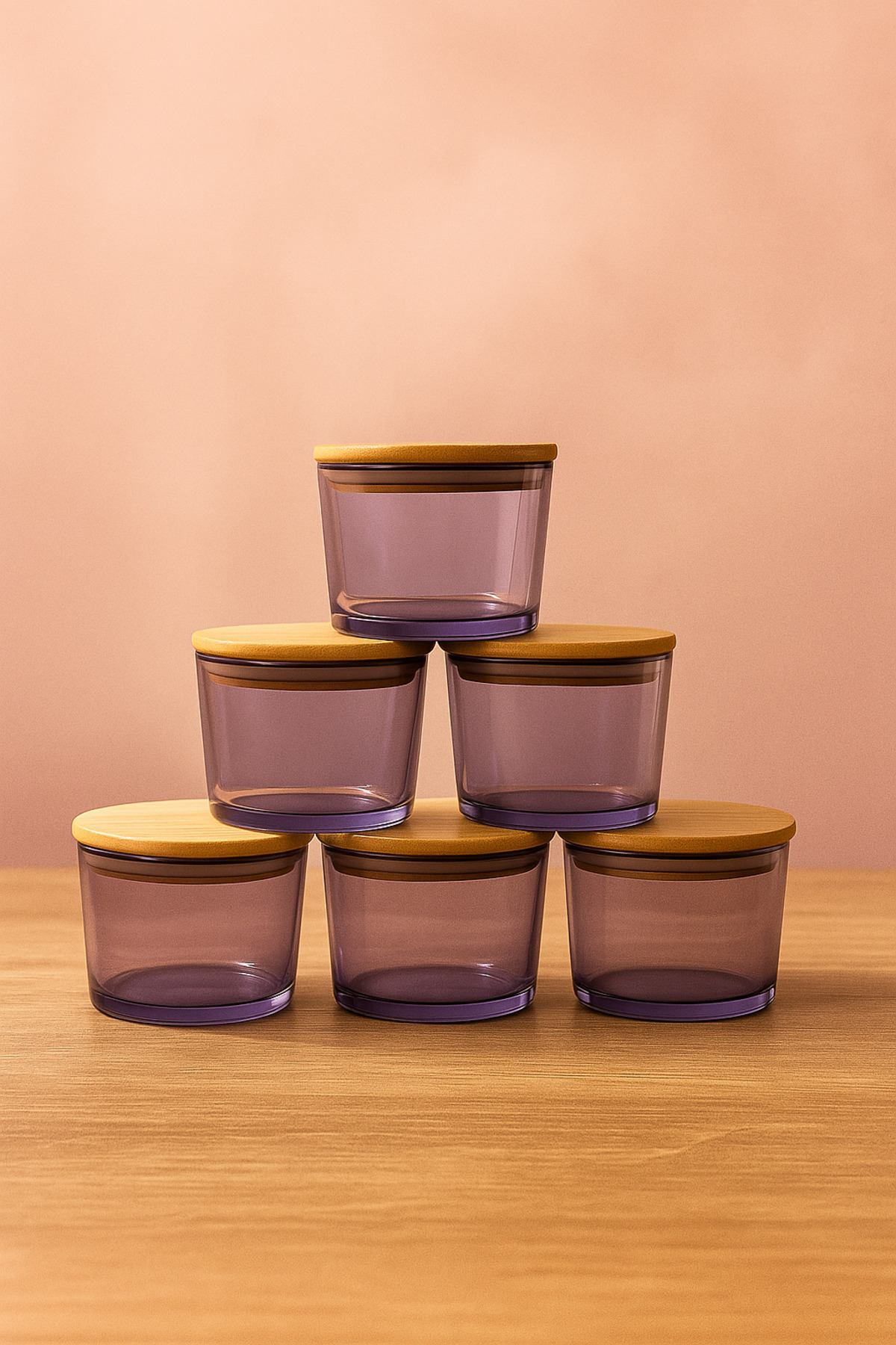 Vetro - 6'lı Bambu Kapaklı Cam Kahvaltılık Kase 220 cc Vetro - 6'lı Bambu Kapaklı Cam Kahvaltılık Kase 220 cc F10167 تک سایز