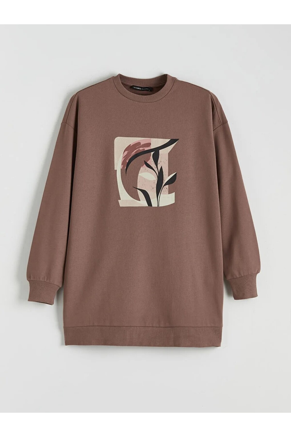 LCWAIKIKI BasicKahverengi Baskılı Oversize Kadın Sweatshirt Tunik LCWAIKIKI BasicKahverengi Baskılı Oversize Kadın Sweatshirt Tunik LCW-8A2D252B 3XL