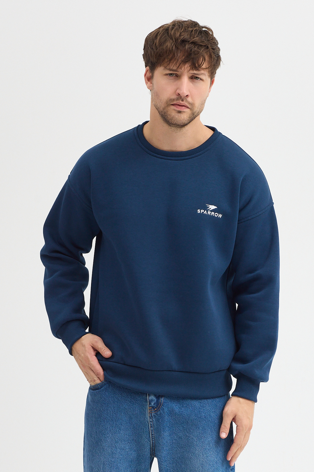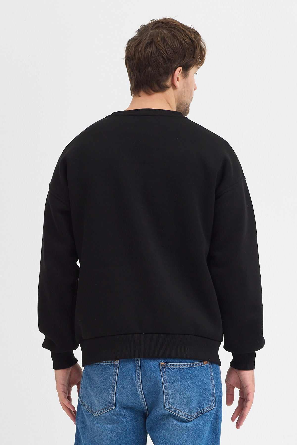 Erkek Oversize Sweatshirt Pamuklu Bisiklet Yaka Nakışlı 3 İplik Erkek Oversize Sweatshirt Pamuklu Bisiklet Yaka Nakışlı 3 İplik SPRW-B-N 2XL