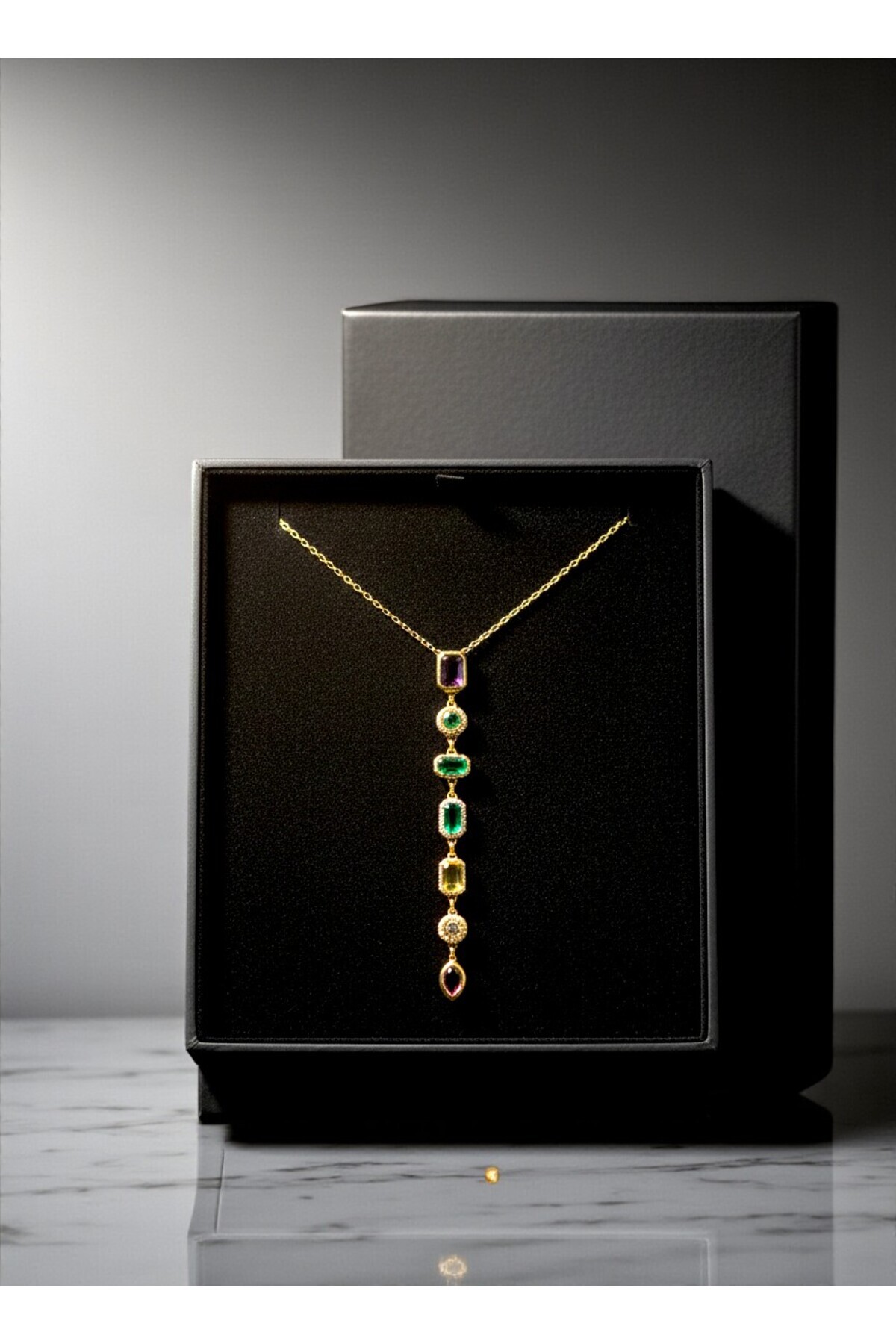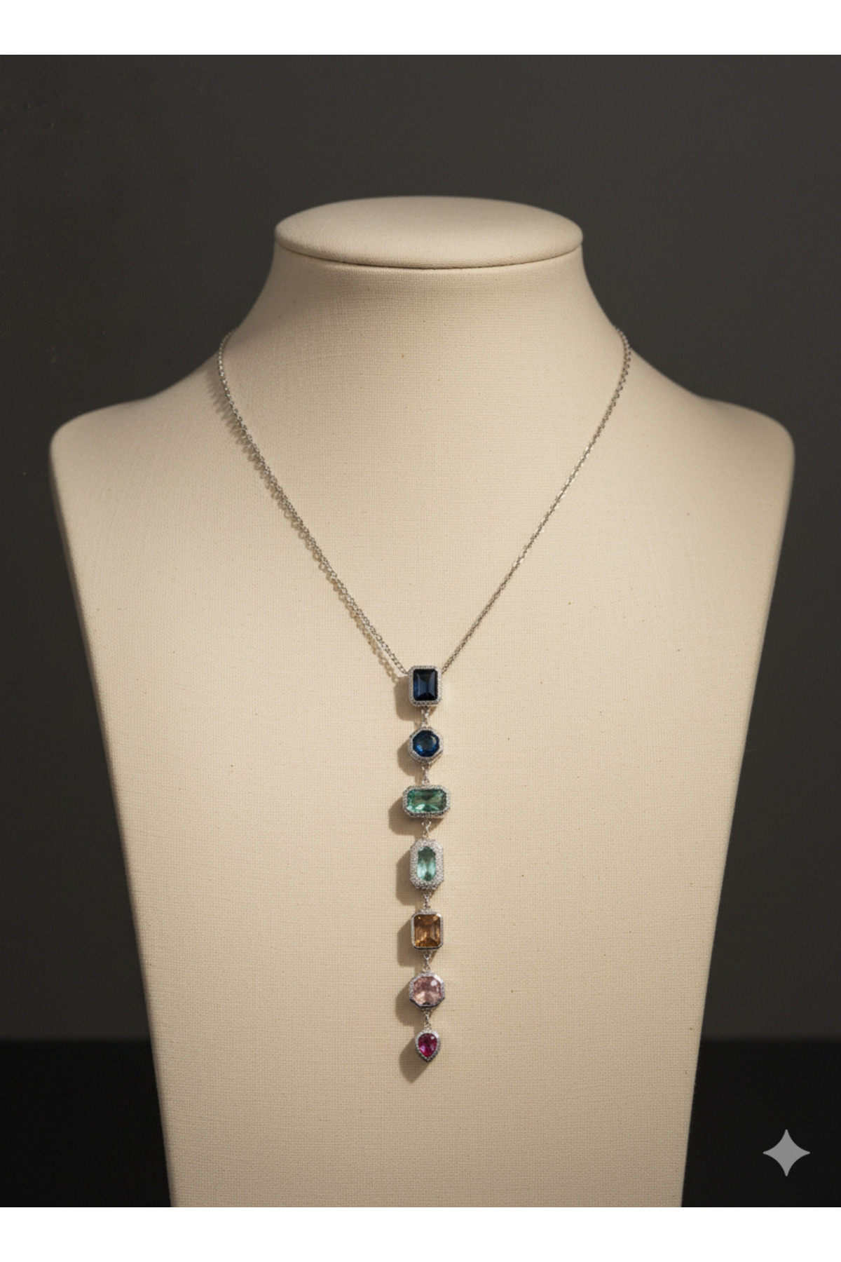 Gümüş Melis Göral 7 Element Renkli Taş Çelik Y Kolye Gümüş Melis Göral 7 Element Renkli Taş Çelik Y Kolye GM70 تک سایز