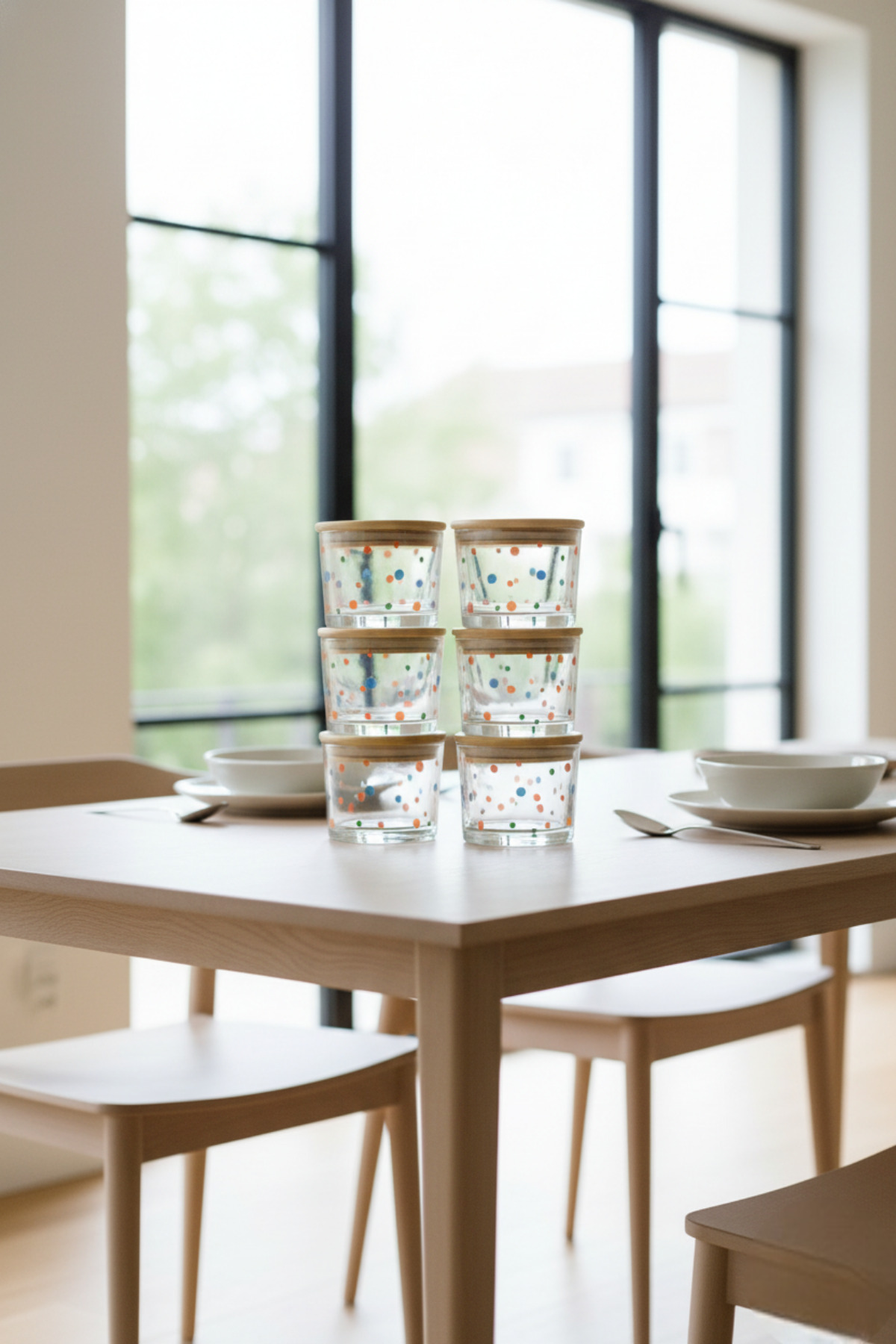 Vetro - 6'lı Bambu Kapaklı Cam Kahvaltılık Kase 220 cc Vetro - 6'lı Bambu Kapaklı Cam Kahvaltılık Kase 220 cc F10167 تک سایز