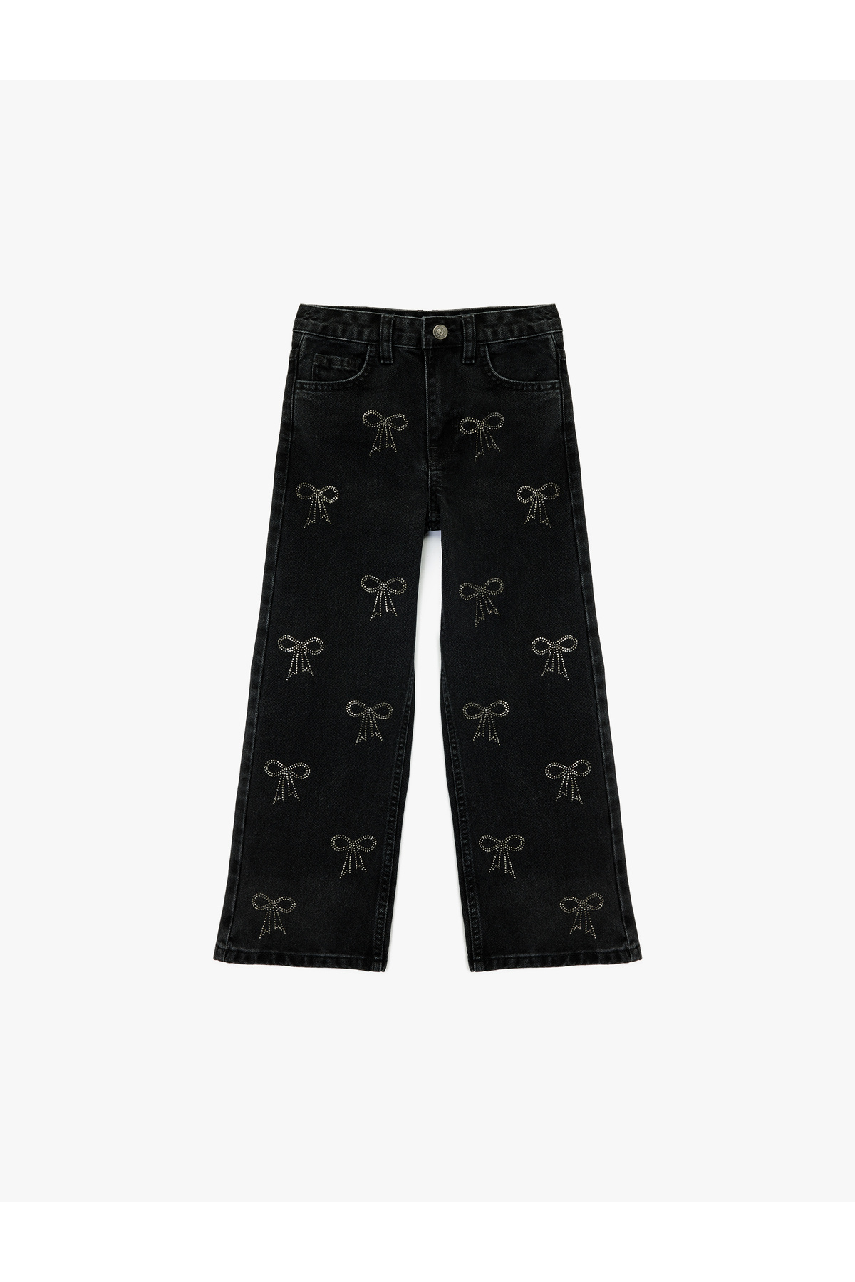 Pamuklu İnci Detaylı Yıpratmalı Straight Fit Denim Pantolon Pamuklu İnci Detaylı Yıpratmalı Straight Fit Denim Pantolon 6WKG40047AD 13-14 Yaş