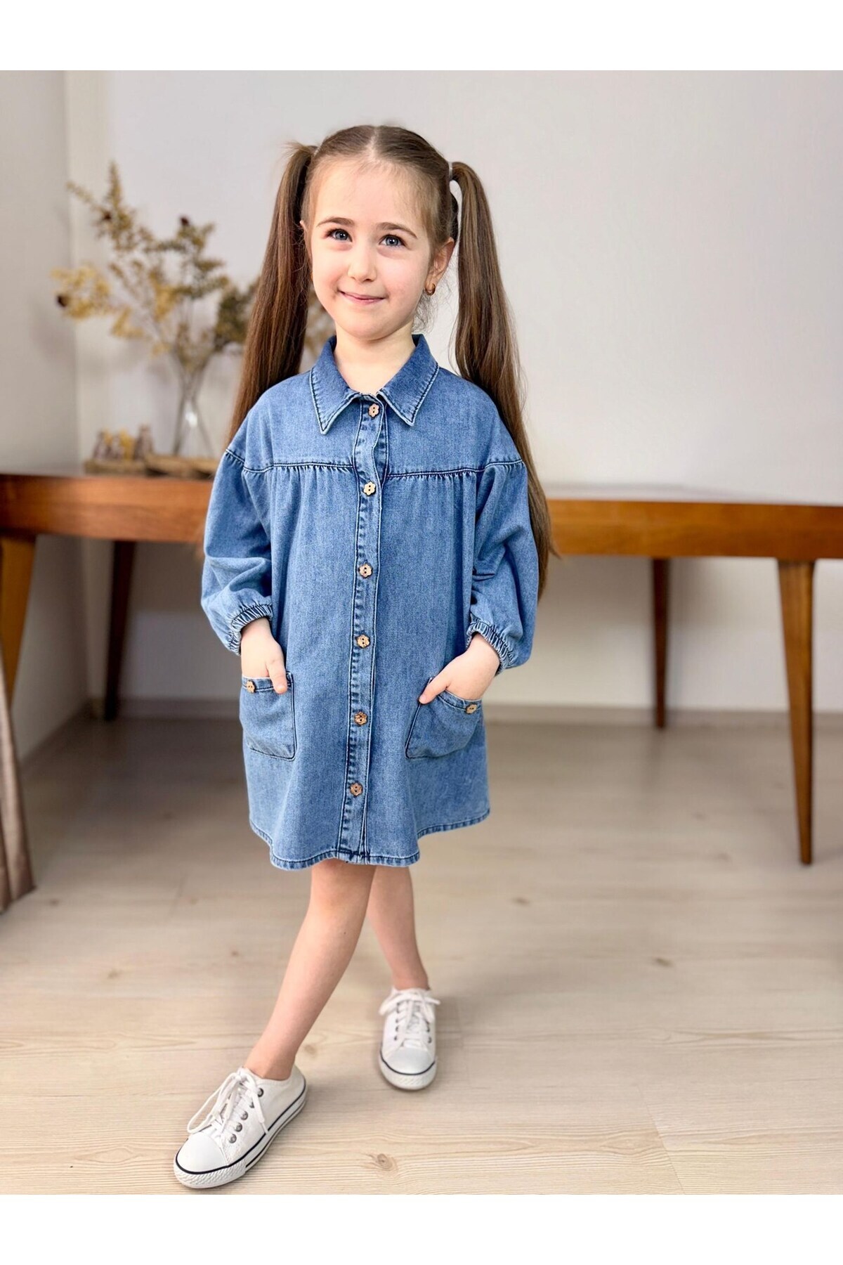 Vizyon Yeni Sezon Gömlek Yaka Kız Çocuk Jean Elbise Vizyon Yeni Sezon Gömlek Yaka Kız Çocuk Jean Elbise W5IH30Z1-507 9-12