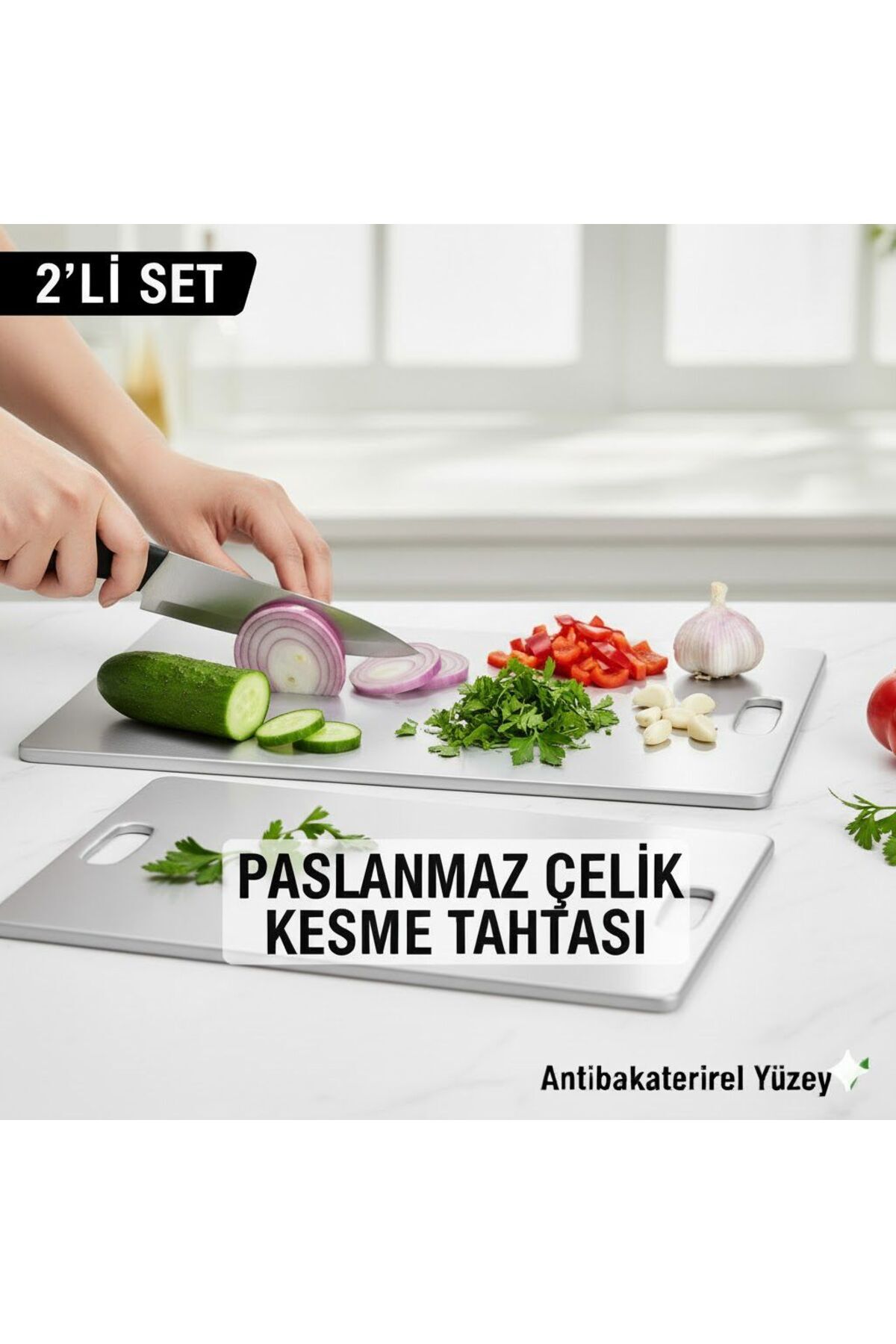 2'li Paslanmaz Çelik Kesme Tahtası (Yüksek Kalite 0.90 mm) 2'li Paslanmaz Çelik Kesme Tahtası (Yüksek Kalite 0.90 mm) 03 تک سایز