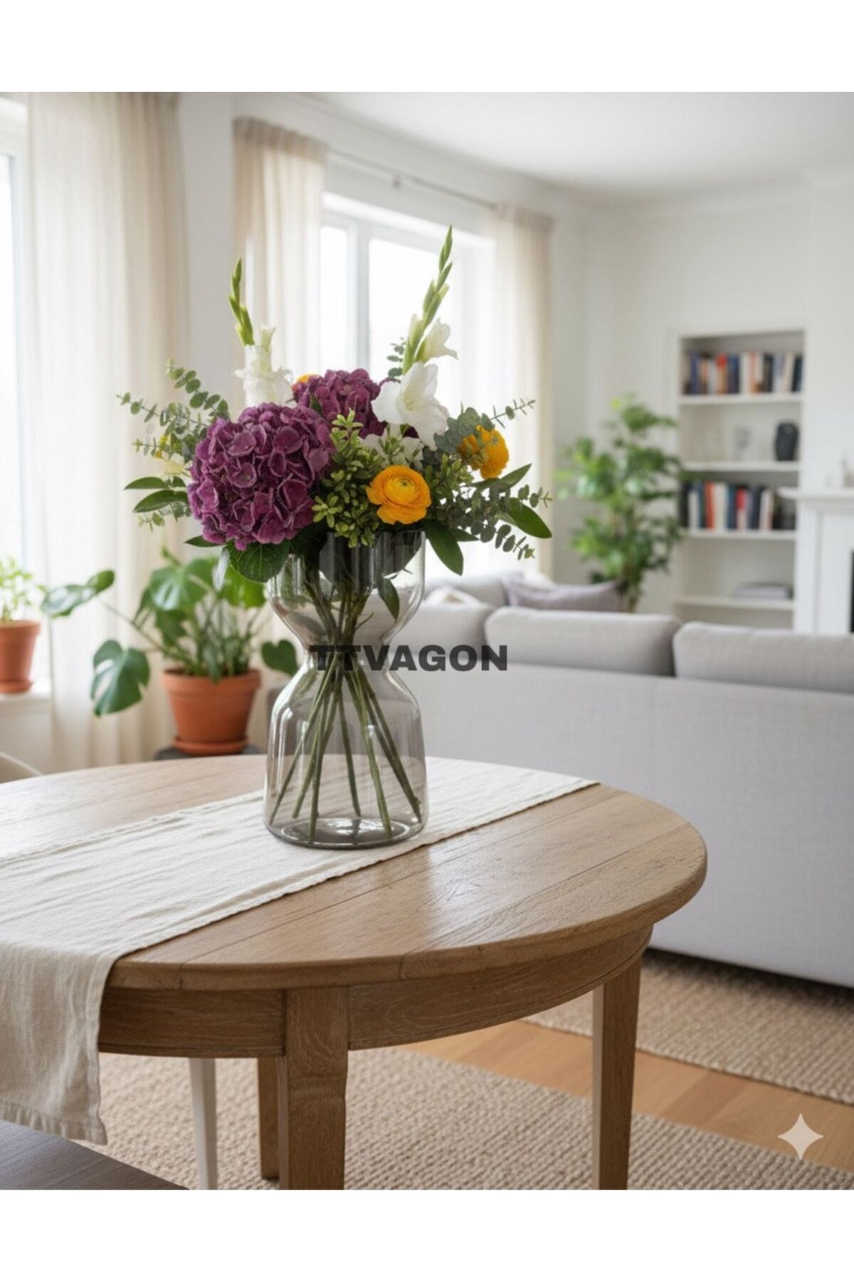 Dekoratif Büyük Kum Saati Vazo | Antrasit Cam Çiçeklik Modern Şık Salon Aksesuar 30cm Dekoratif Büyük Kum Saati Vazo | Antrasit Cam Çiçeklik Modern Şık Salon Aksesuar 30cm ttvagon2834 تک سایز