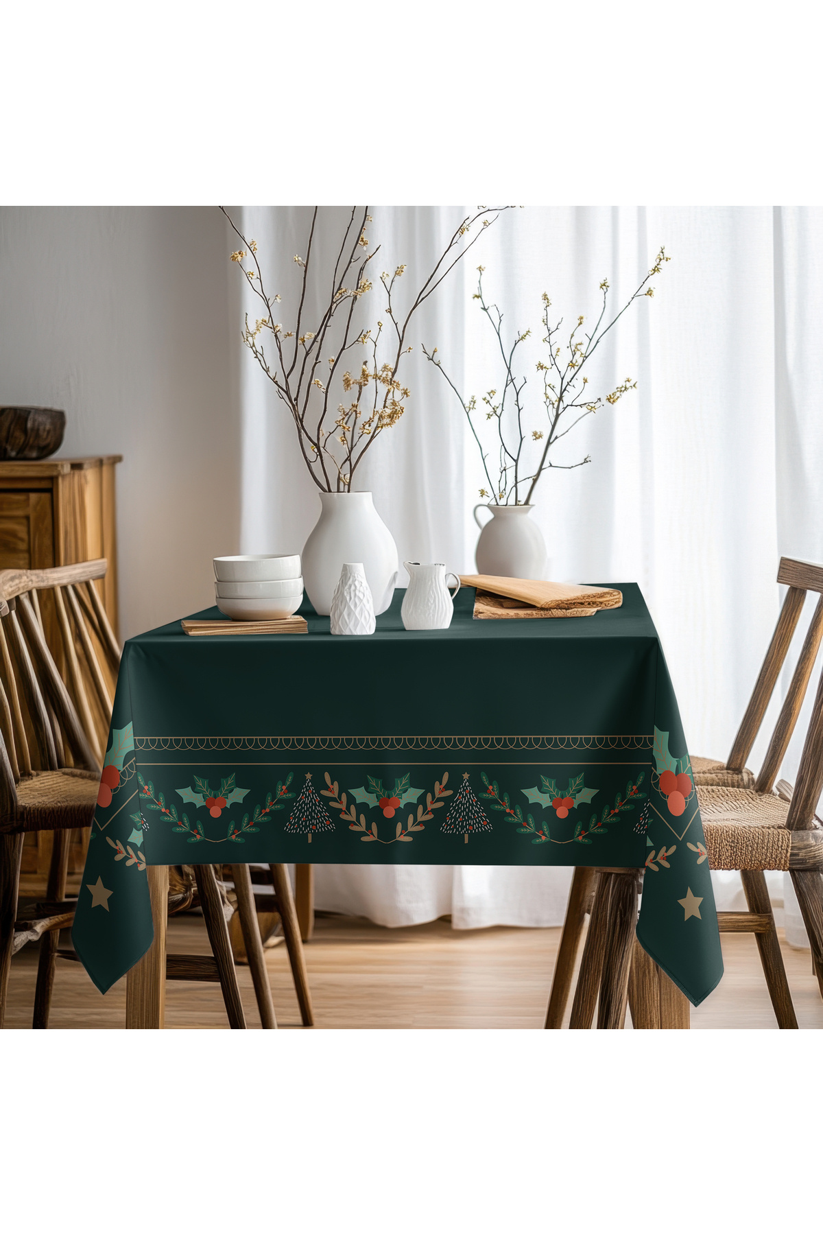 Yılbaşı Ağacı ve Süsleri Desenli Bordürlü Yeşil Masa Örtüsü,Dertsiz,Leke Tutmaz,Rengi Solmaz Yılbaşı Ağacı ve Süsleri Desenli Bordürlü Yeşil Masa Örtüsü,Dertsiz,Leke Tutmaz,Rengi Solmaz CSTBCLTH2514S 140 x 240