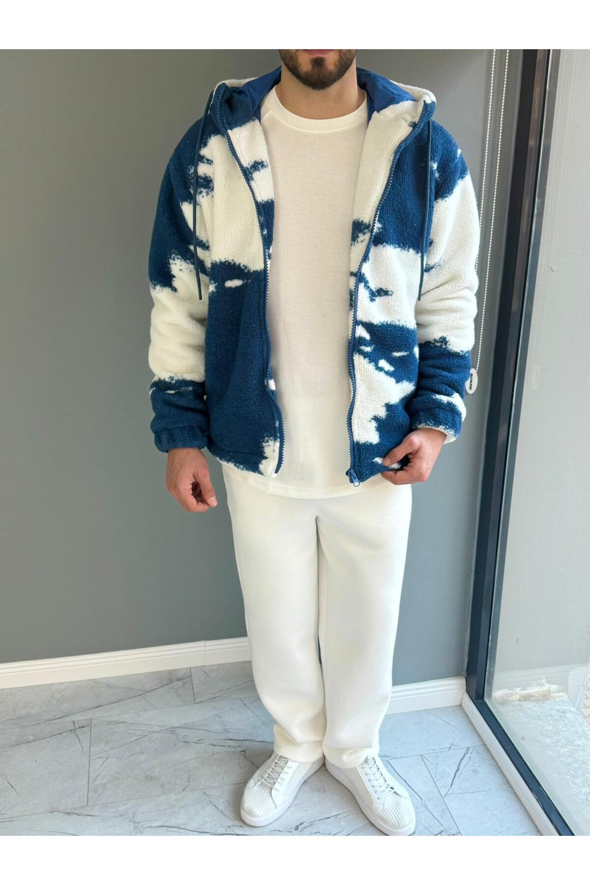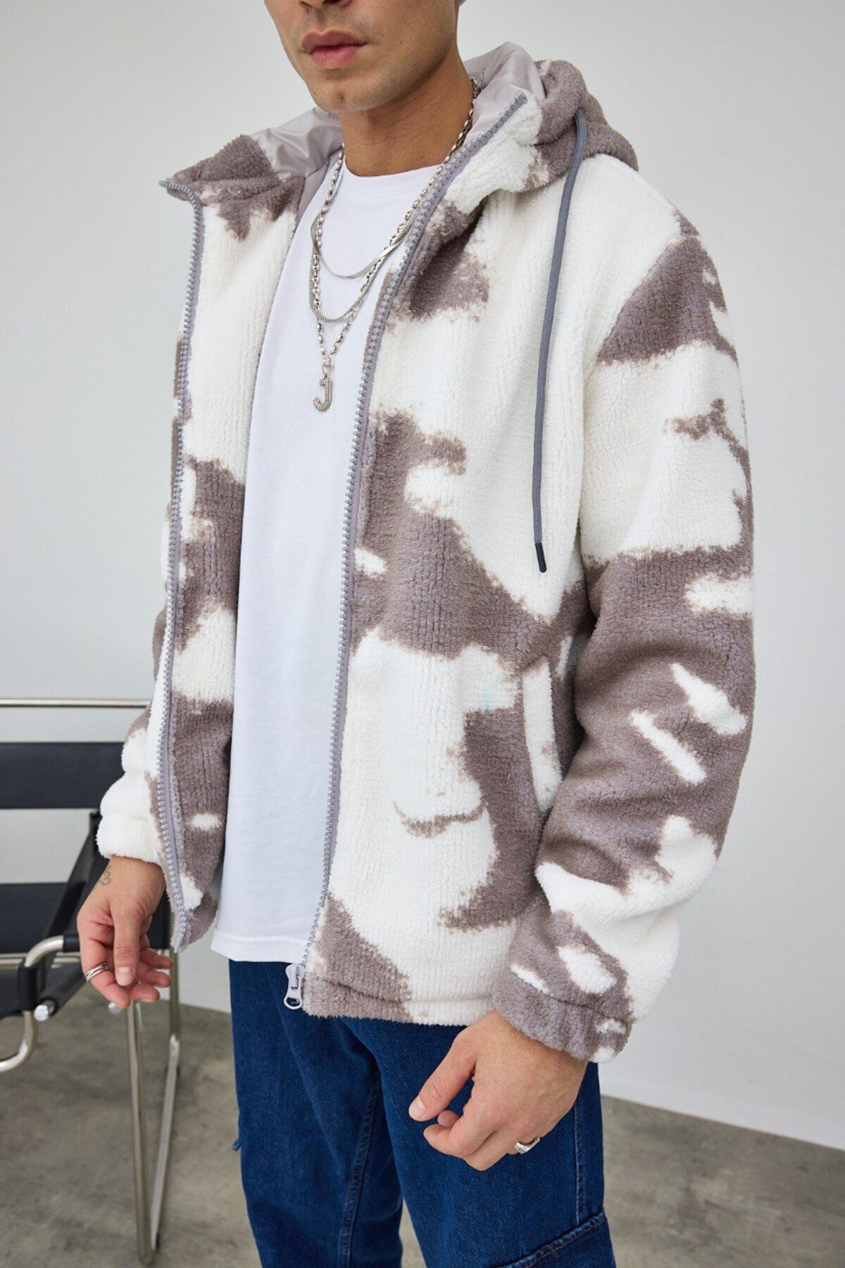Bulut Desenli Astarlı Kapüşonlu Peluş Mont Bulut Desenli Astarlı Kapüşonlu Peluş Mont LNS89934 XL