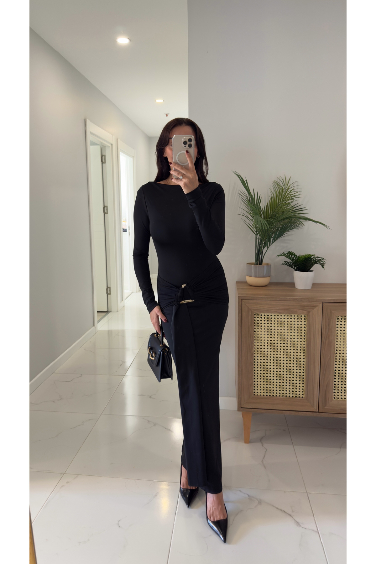Zegra Kahve Gold Toka Detaylı Arka Yırtmaçlı Elbise Zegra Kahve Gold Toka Detaylı Arka Yırtmaçlı Elbise ELB133 L