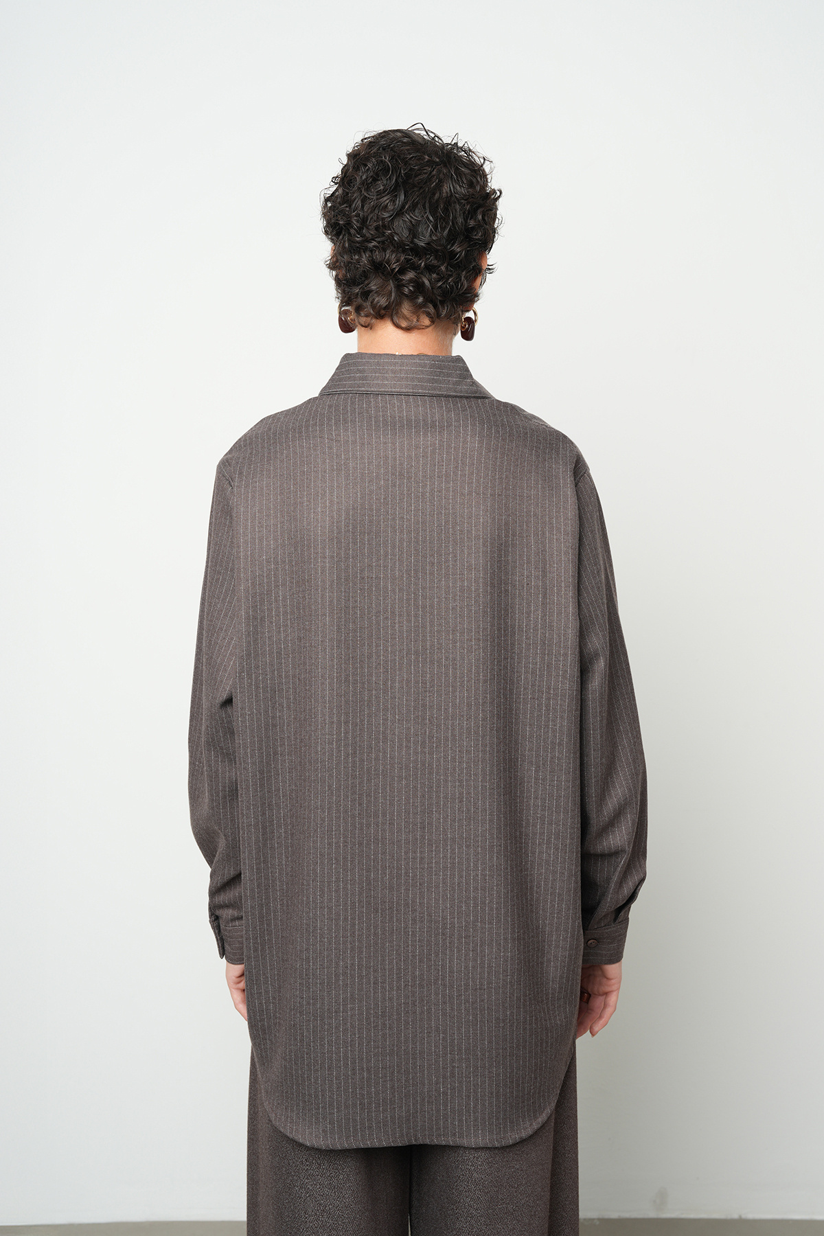 Kadın Taş İşlemeli Çizgili Kahve Oversize Gömlek Kadın Taş İşlemeli Çizgili Kahve Oversize Gömlek 34626 Standart