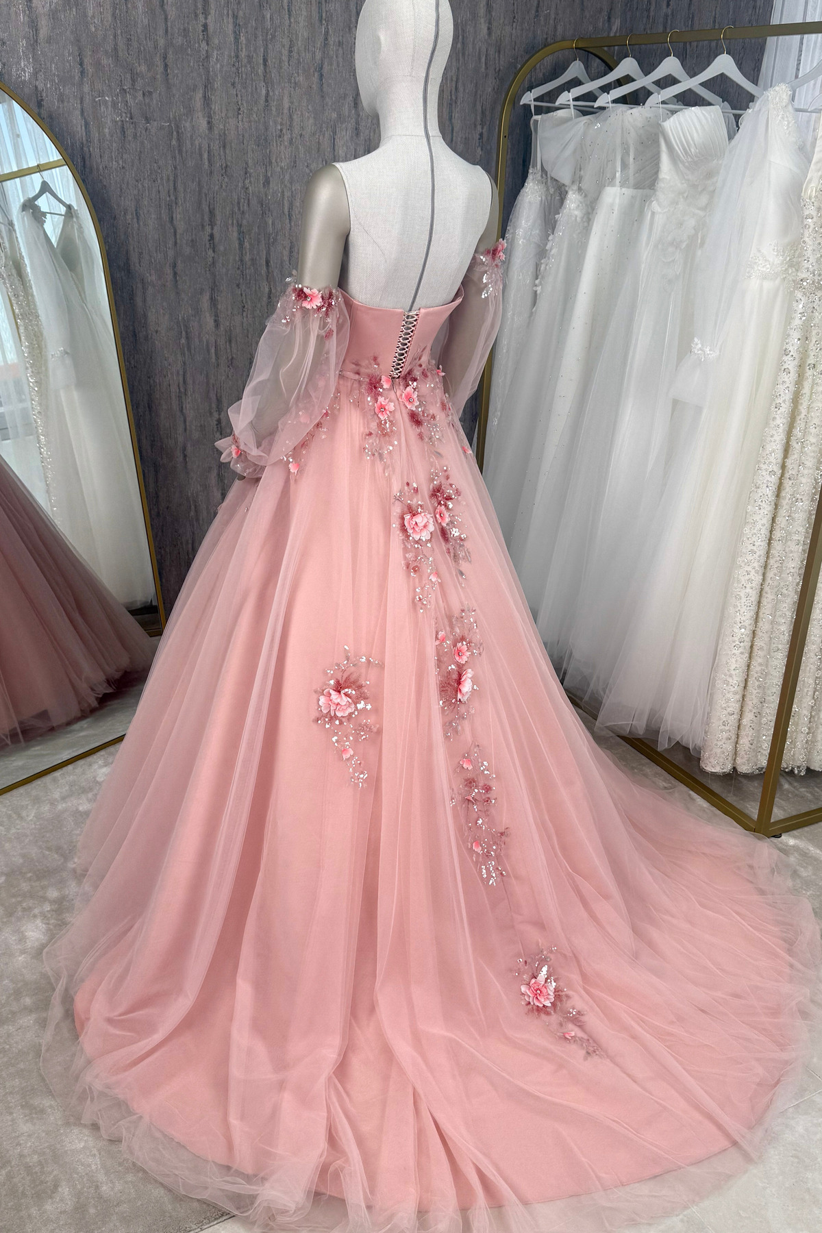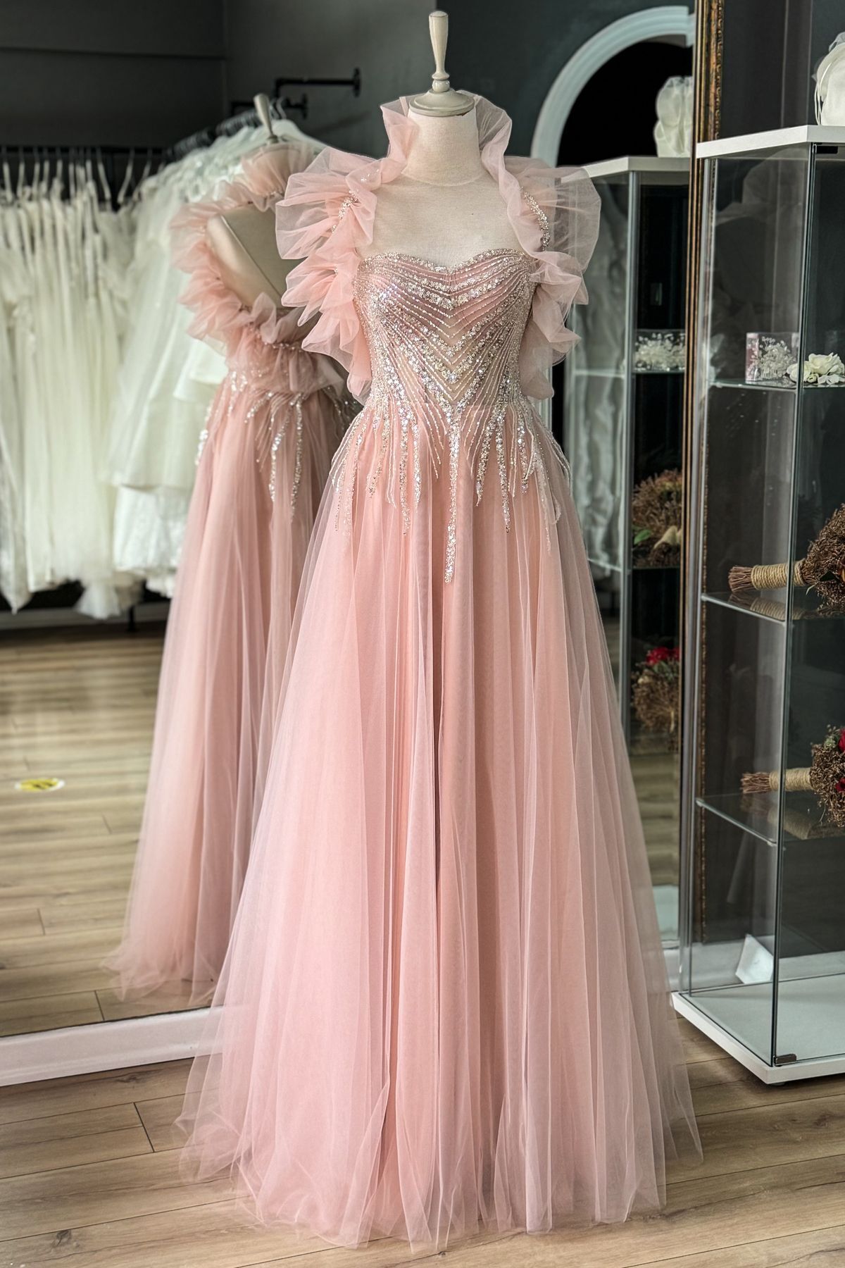 Pudra Üç Boyutlu Dantel ve Kuyruk Detaylı Maxi Boy Nişanlık / Abiye Elbise Pudra Üç Boyutlu Dantel ve Kuyruk Detaylı Maxi Boy Nişanlık / Abiye Elbise LM051125N01 44