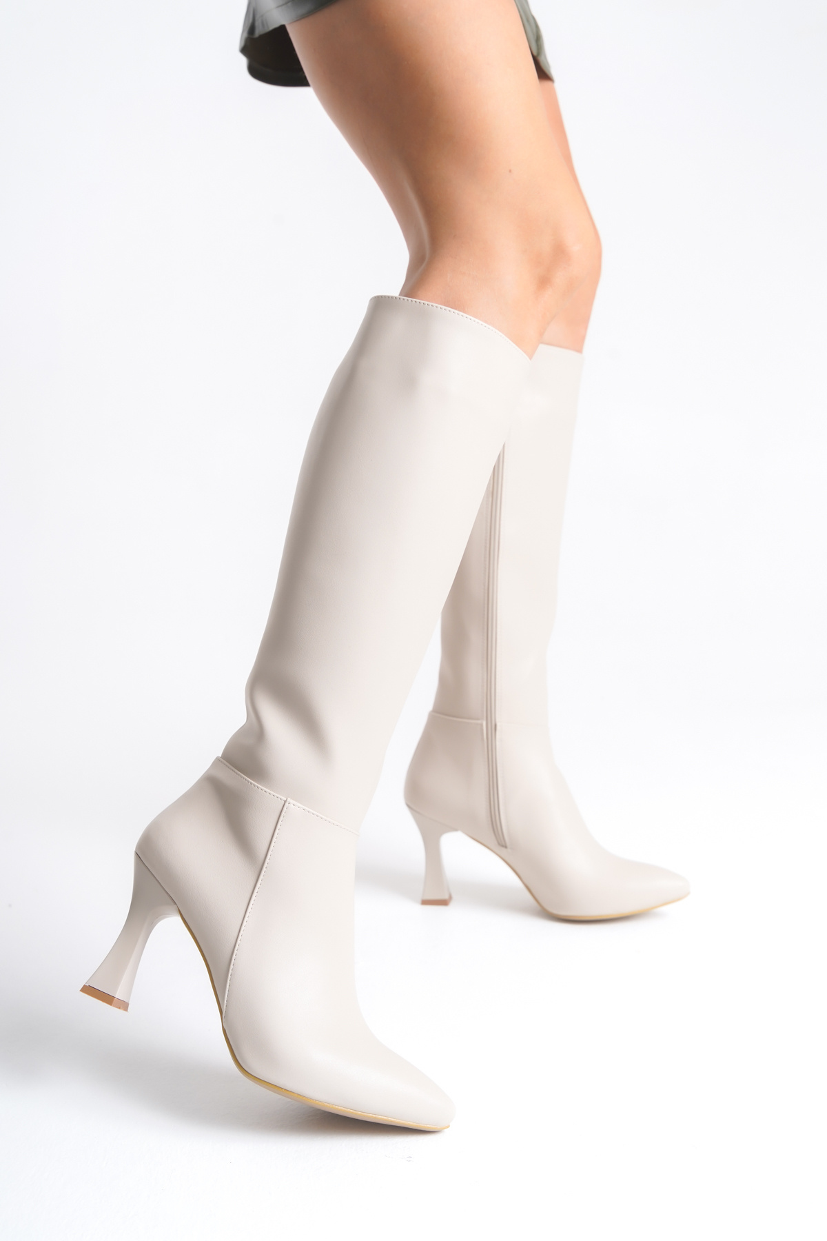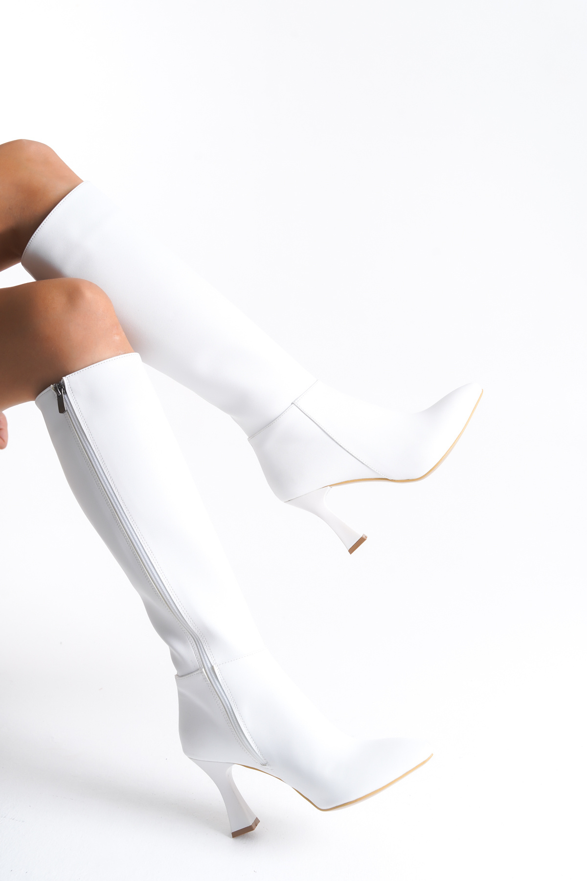 Kadın Sivri Burun Fermuarlı İnce Topuk Günlük Çizme Era Beyaz Kadın Sivri Burun Fermuarlı İnce Topuk Günlük Çizme Era Beyaz FM-350274 40