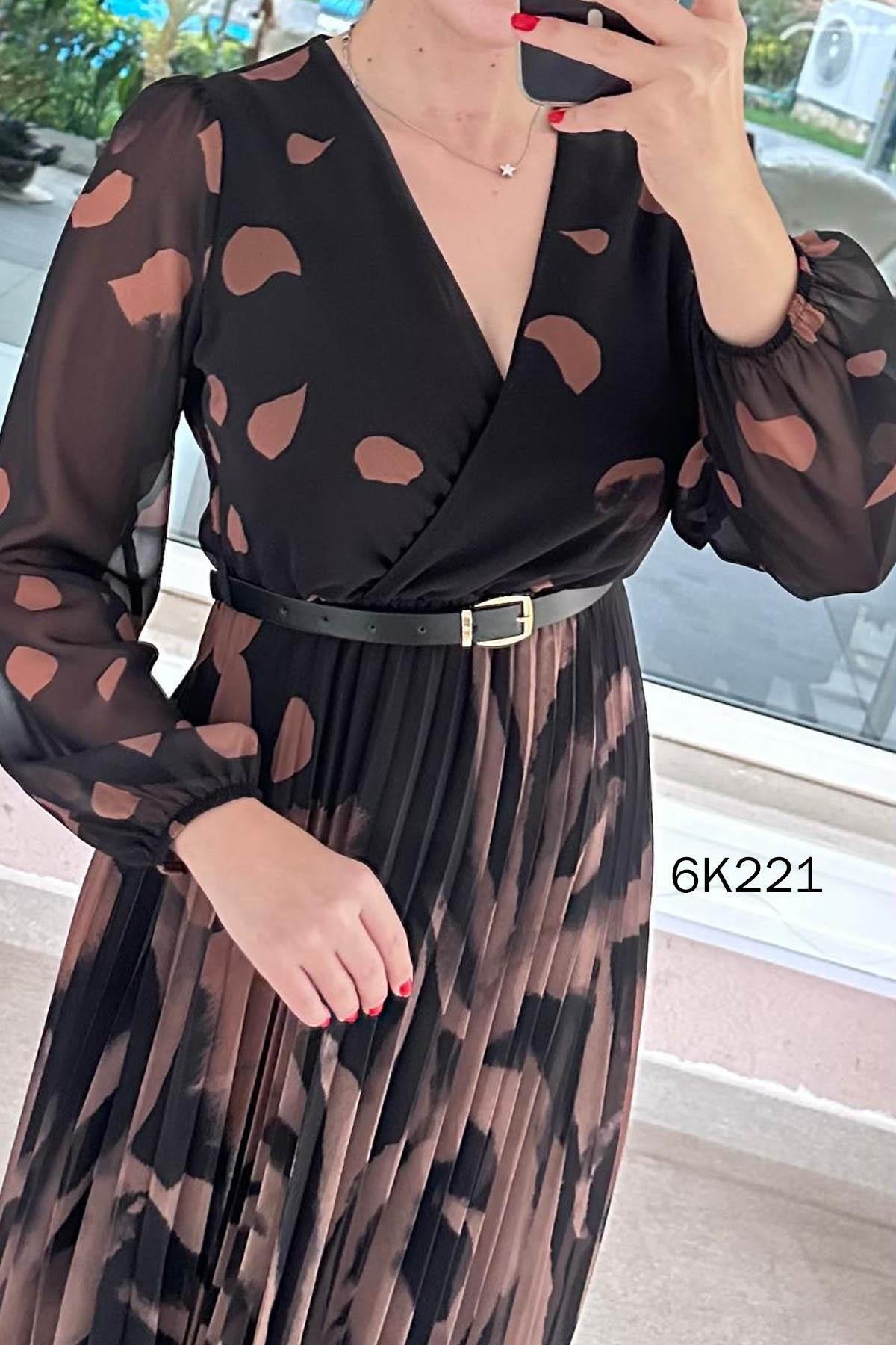 Kruvaze Yaka Piliseli Şifon Elbise 6k221 Kruvaze Yaka Piliseli Şifon Elbise 6k221 2XL