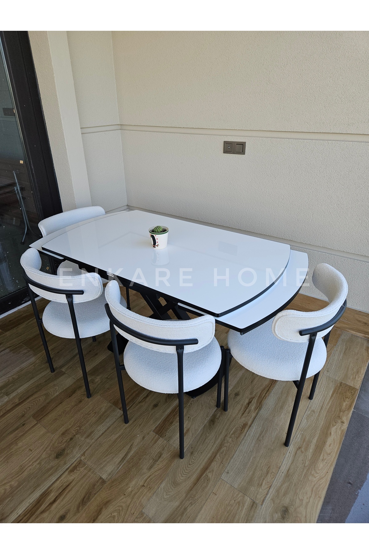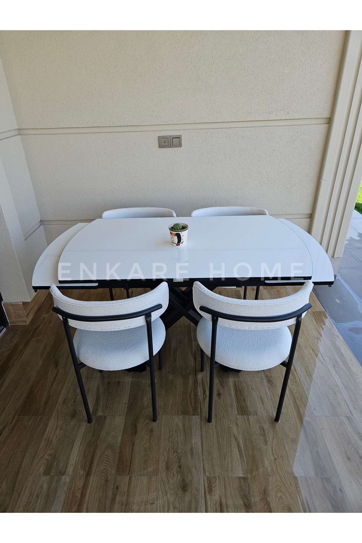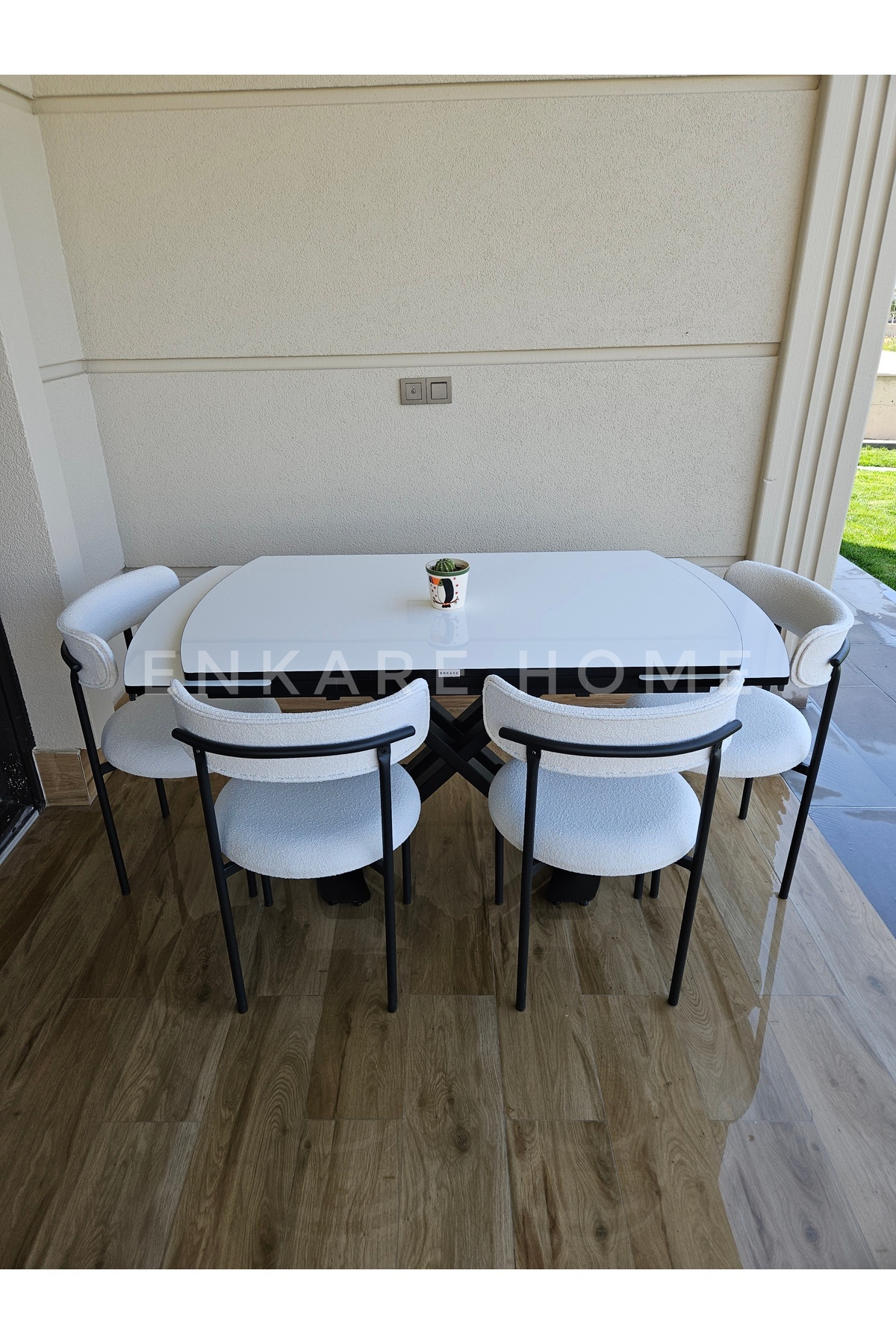 X Ayaklı Gloss Masa Elisa Sandalye Takımı | Mutfak & Salon | Açılabilir Mdf Masa + 4 Sandalye X Ayaklı Gloss Masa Elisa Sandalye Takımı | Mutfak & Salon | Açılabilir Mdf Masa + 4 Sandalye ENXMES تک سایز