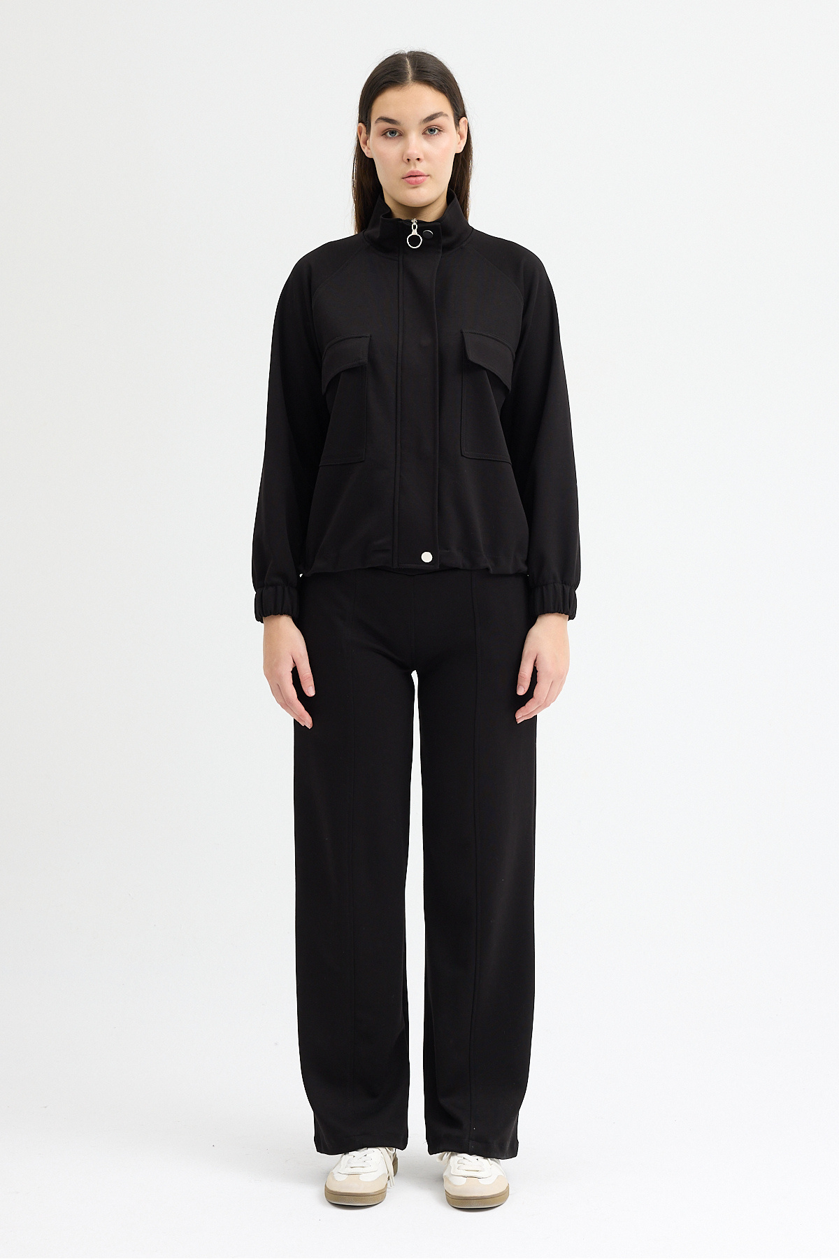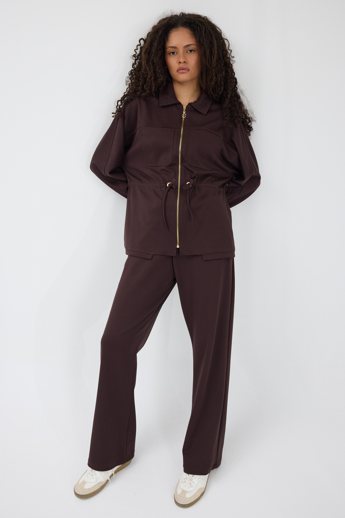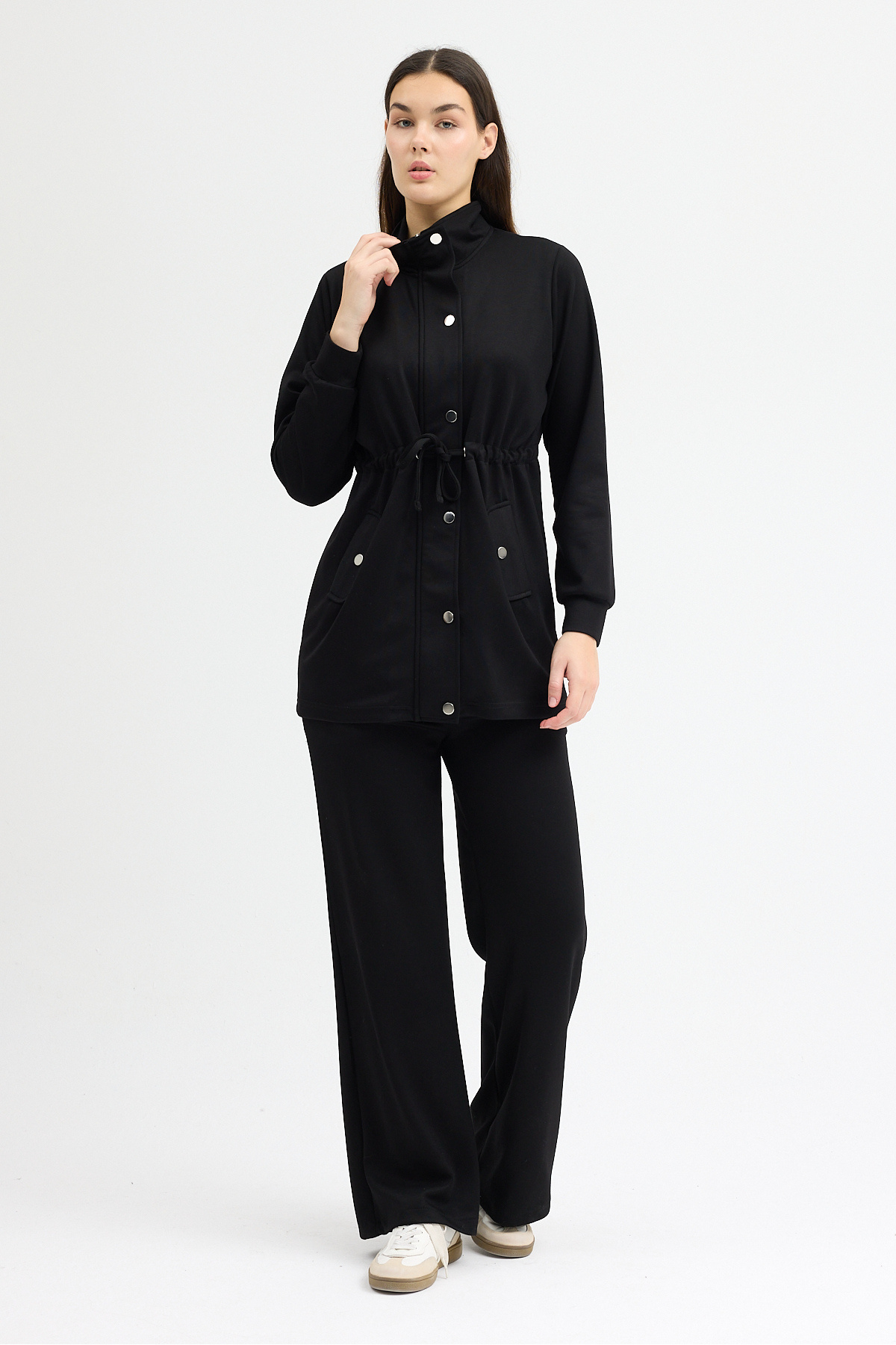 Belden Büzgülü Fermuar Ve Çıtçıtlı Modal Kumaş Eşofman Takımı Belden Büzgülü Fermuar Ve Çıtçıtlı Modal Kumaş Eşofman Takımı 7429 5XL