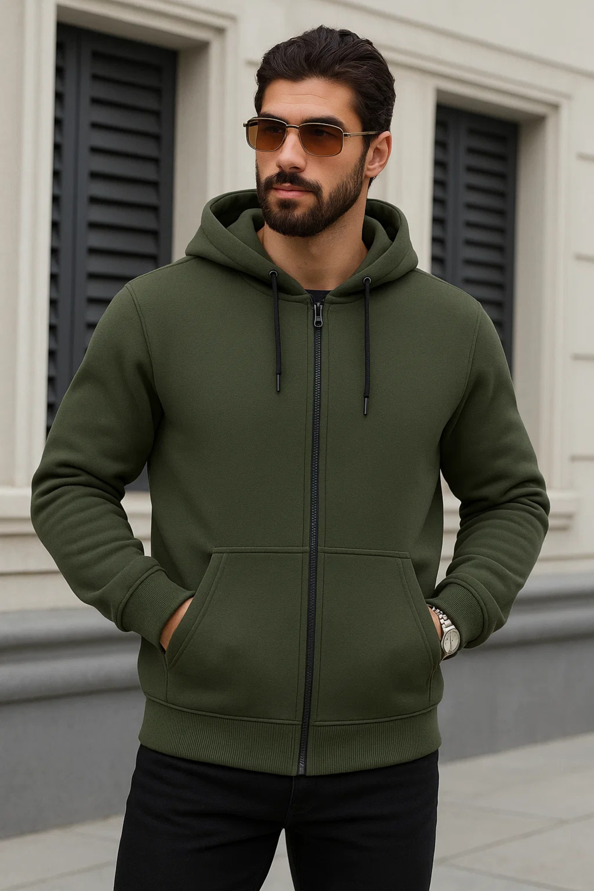 Erkek Salaş Fermuarlı Kapşonlu 3 Lü Sweatshirt Erkek Salaş Fermuarlı Kapşonlu 3 Lü Sweatshirt 3-Paket-48433DMJG 6XL