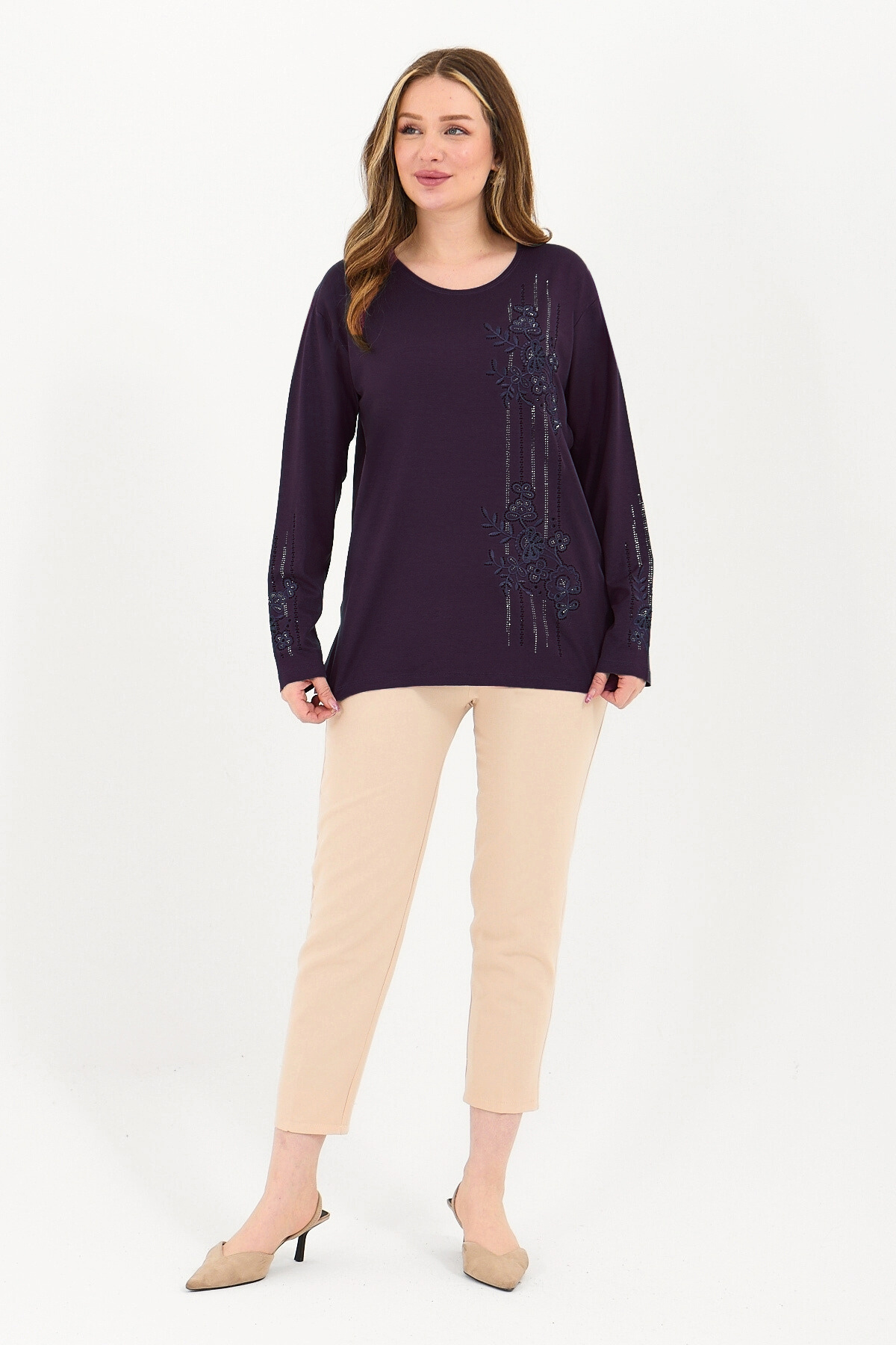 Kadın Kışlık Orta Yaş Ve Üzeri Viskon Şerit Desen Taşlı Işlemeli Likralı Anne Penye Bluz Kadın Kışlık Orta Yaş Ve Üzeri Viskon Şerit Desen Taşlı Işlemeli Likralı Anne Penye Bluz MZ005YNC-S 2XL