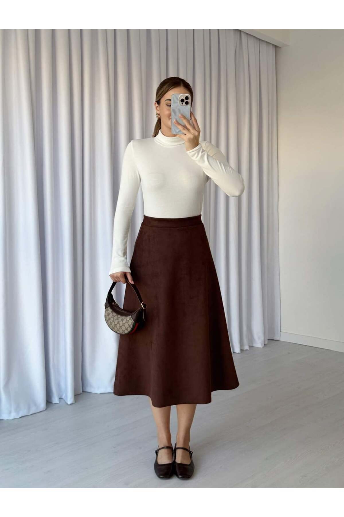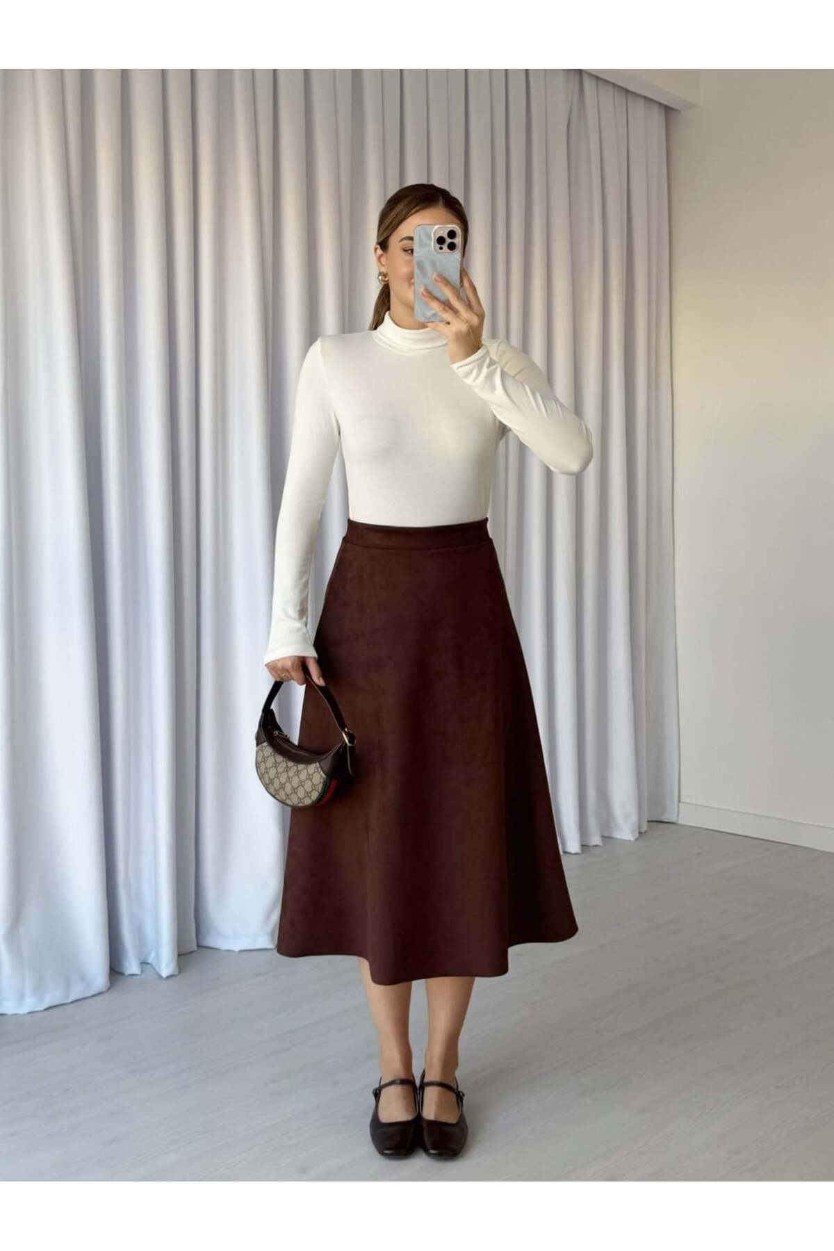Beli Lastikli Süet Etek Beli Lastikli Süet Etek 5085 XL