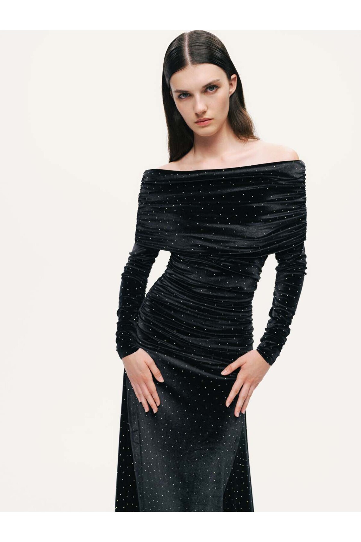 Katlı Düz Yaka Maxi Elbise Katlı Düz Yaka Maxi Elbise N26KN2674 XL
