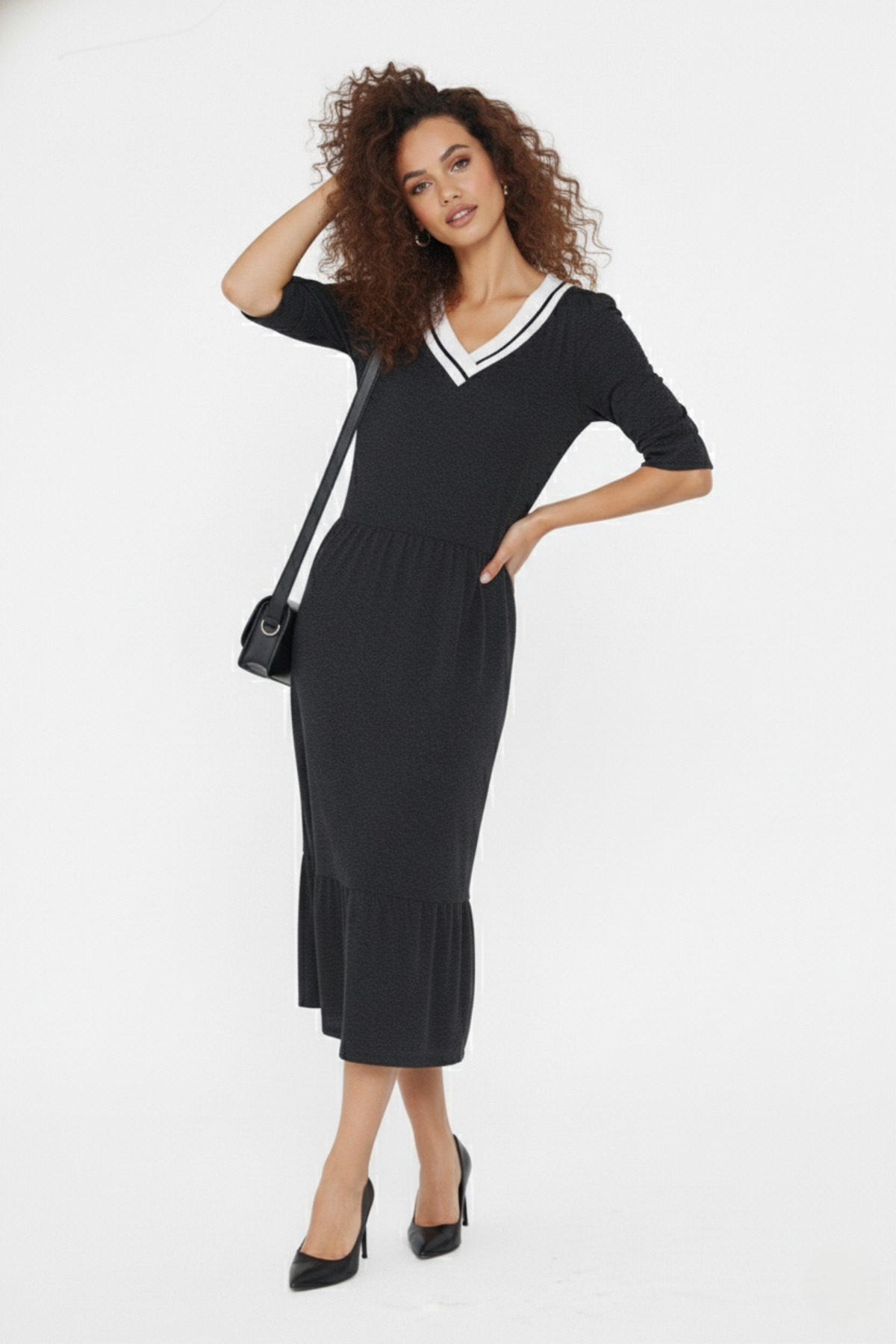 Kadın Kısa Kol Triko V Yakalı Yün Viskon Midi Boy Elbise Kadın Kısa Kol Triko V Yakalı Yün Viskon Midi Boy Elbise Avon-A00251 2XL