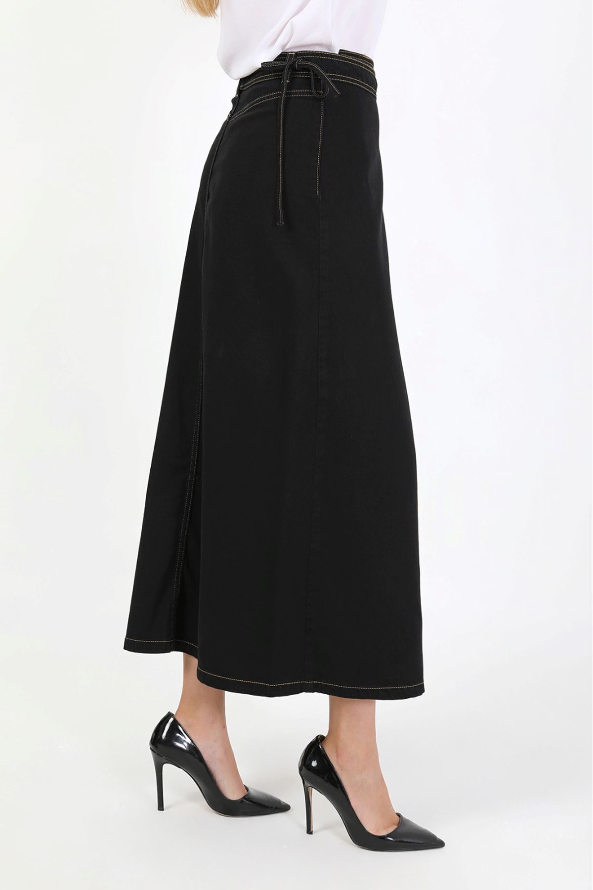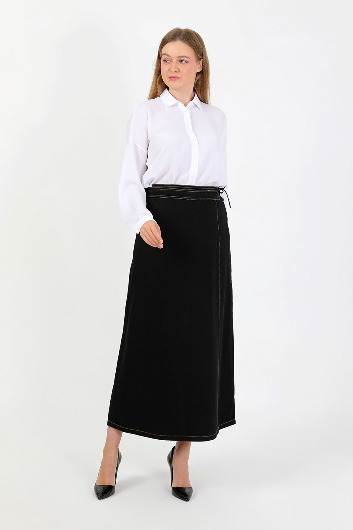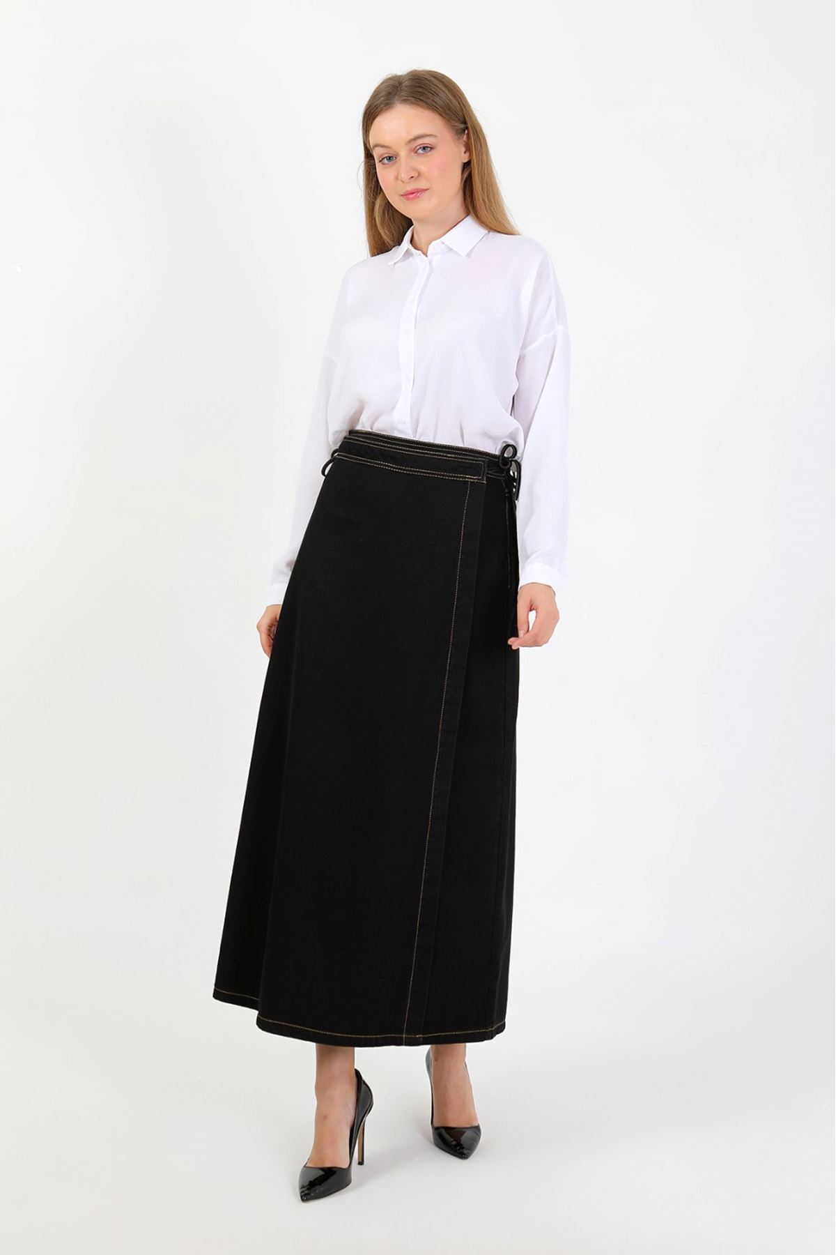 YANDAN BAĞLAMALI DENİM ETEK-SİYAH YANDAN BAĞLAMALI DENİM ETEK-SİYAH ET00029 42