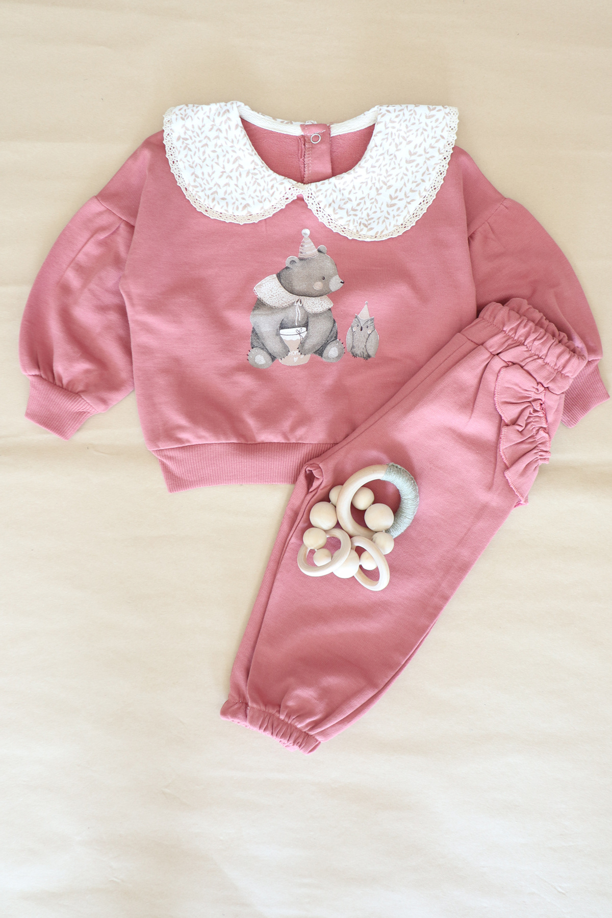 %100 Pamuklu Kız Bebek Yakası Dantelli Düğmeli Triko Hırka & Robadan Bluz&Cepli Pantolon 3'lü Takım %100 Pamuklu Kız Bebek Yakası Dantelli Düğmeli Triko Hırka & Robadan Bluz&Cepli Pantolon 3'lü Takım STK-TKM-0065 24 Ay