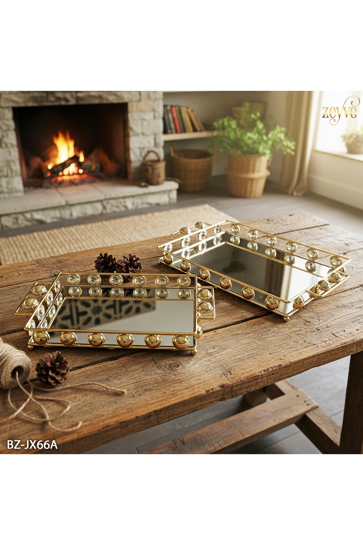 Boncuk Model 2li Metal Dikdörtgen Aynalı Tepsi 37x23x5 cm - 43x29x5 cm Boncuk Model 2li Metal Dikdörtgen Aynalı Tepsi 37x23x5 cm - 43x29x5 cm BZ-JX66 تک سایز