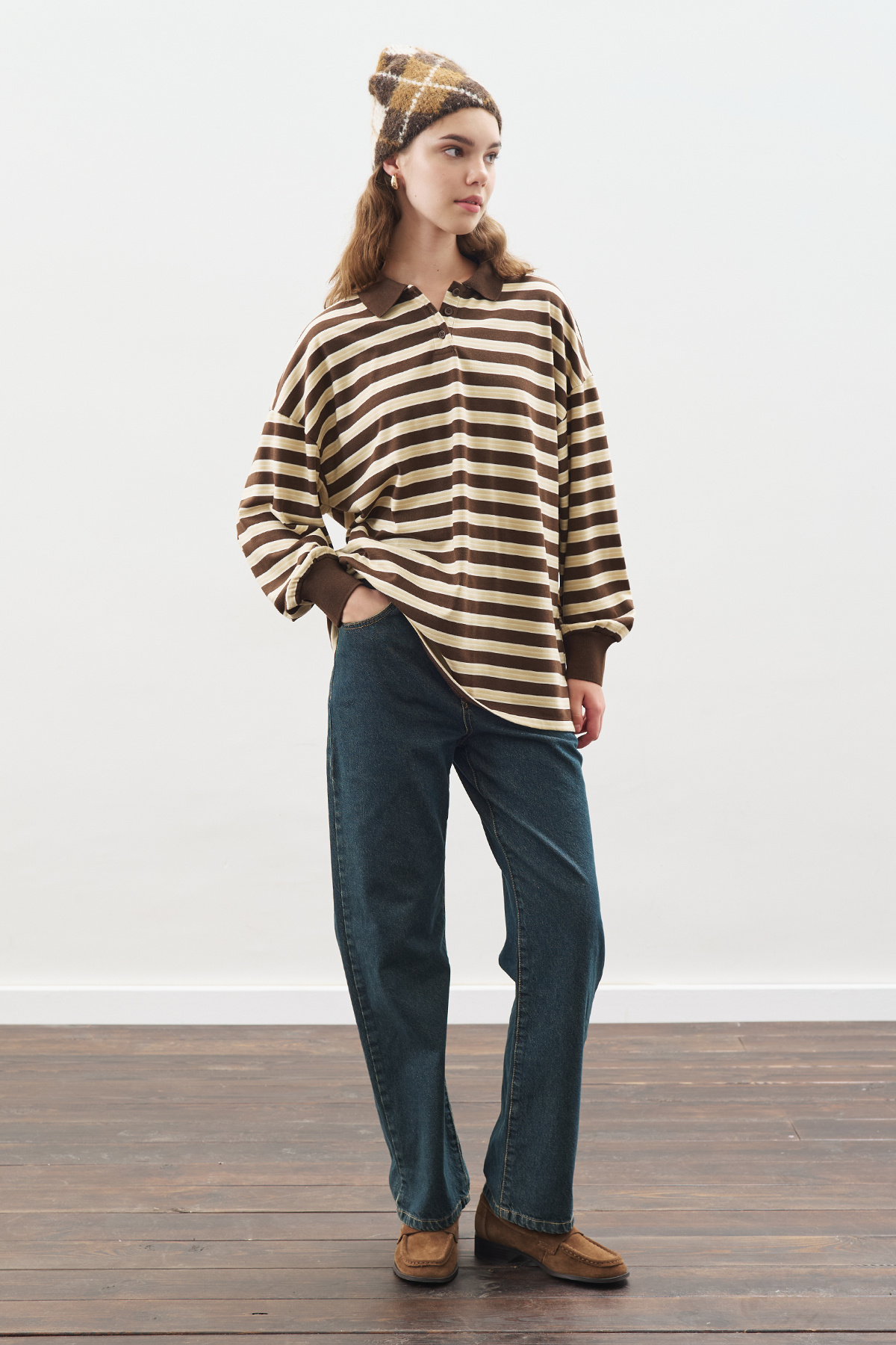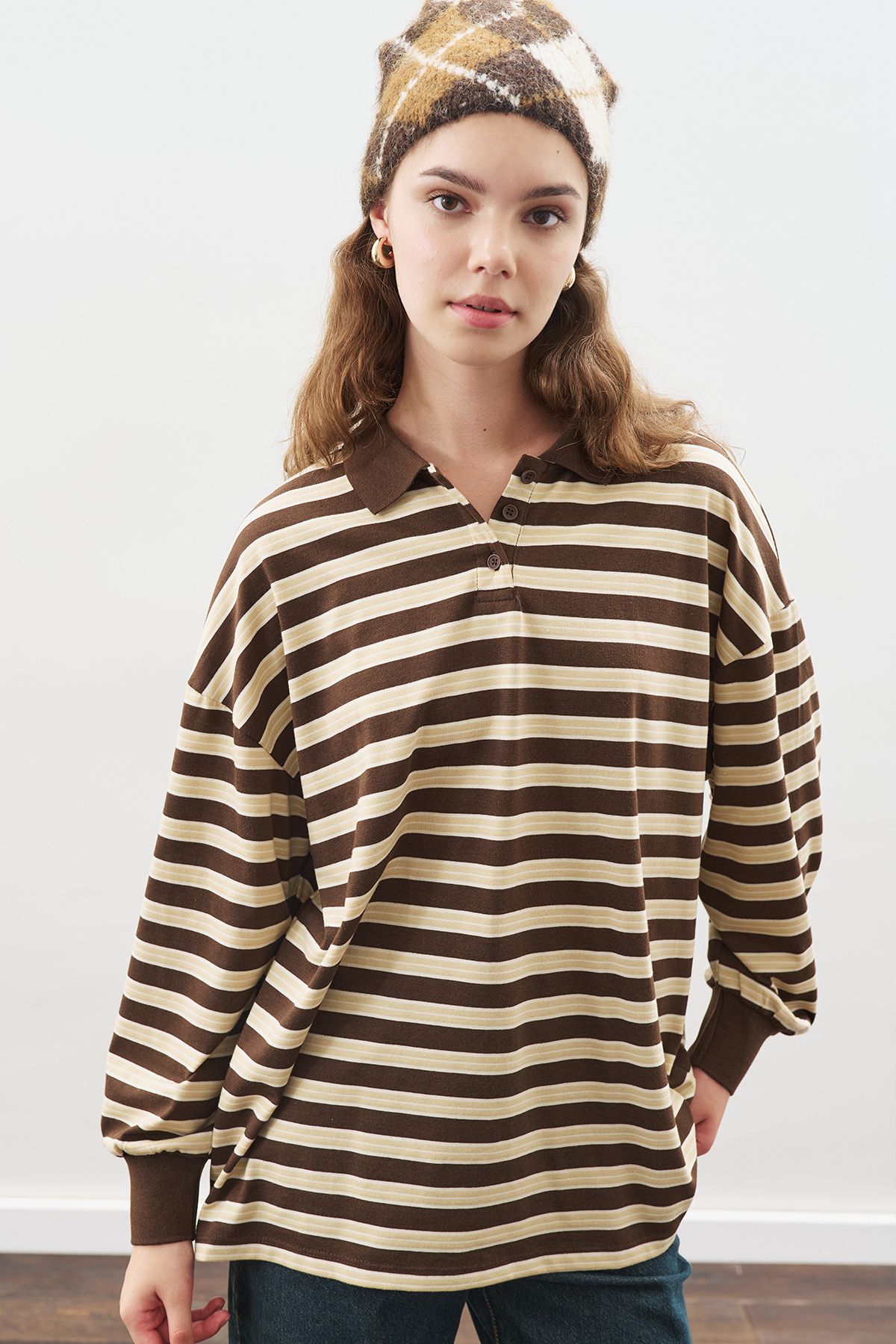 POLO YAKA OVERSIZE TSHIRT KAHVERENGİ POLO YAKA OVERSIZE TSHIRT KAHVERENGİ AW25TSH00004 M/L
