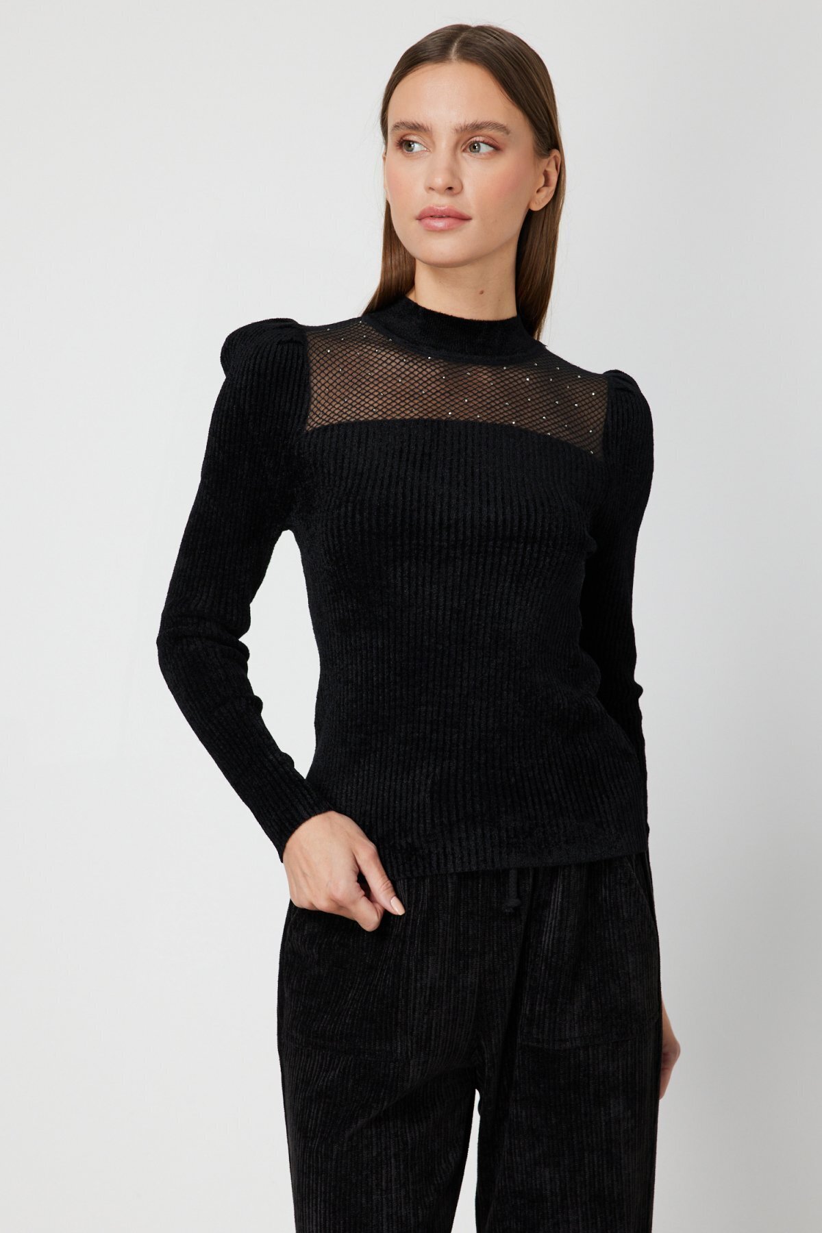 Transparan Detaylı Kadife Bluz Transparan Detaylı Kadife Bluz 26K.ON.KZK.60415.01 M