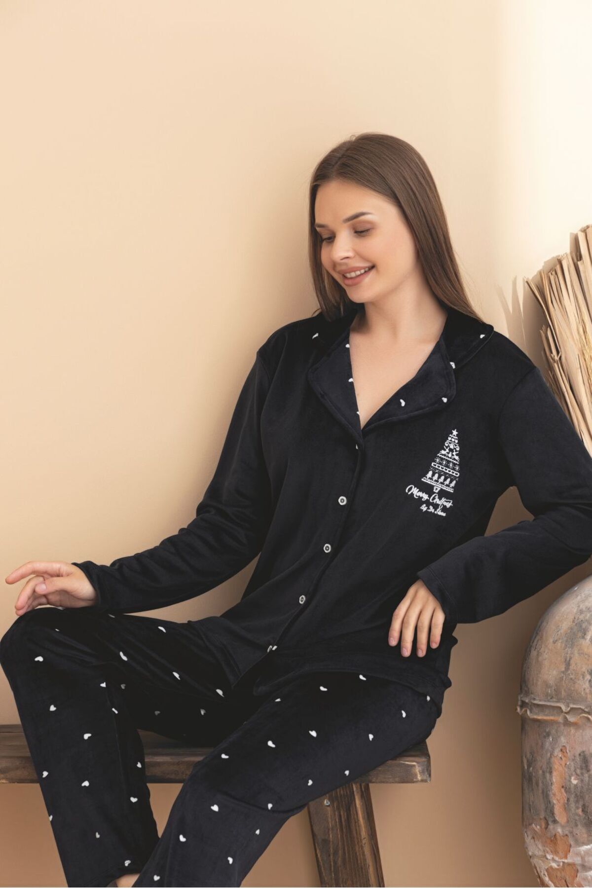 Kadife Winter Reindeer Düğmeli Kadın Pijama Takımı Kadife Winter Reindeer Düğmeli Kadın Pijama Takımı 8720 4XL