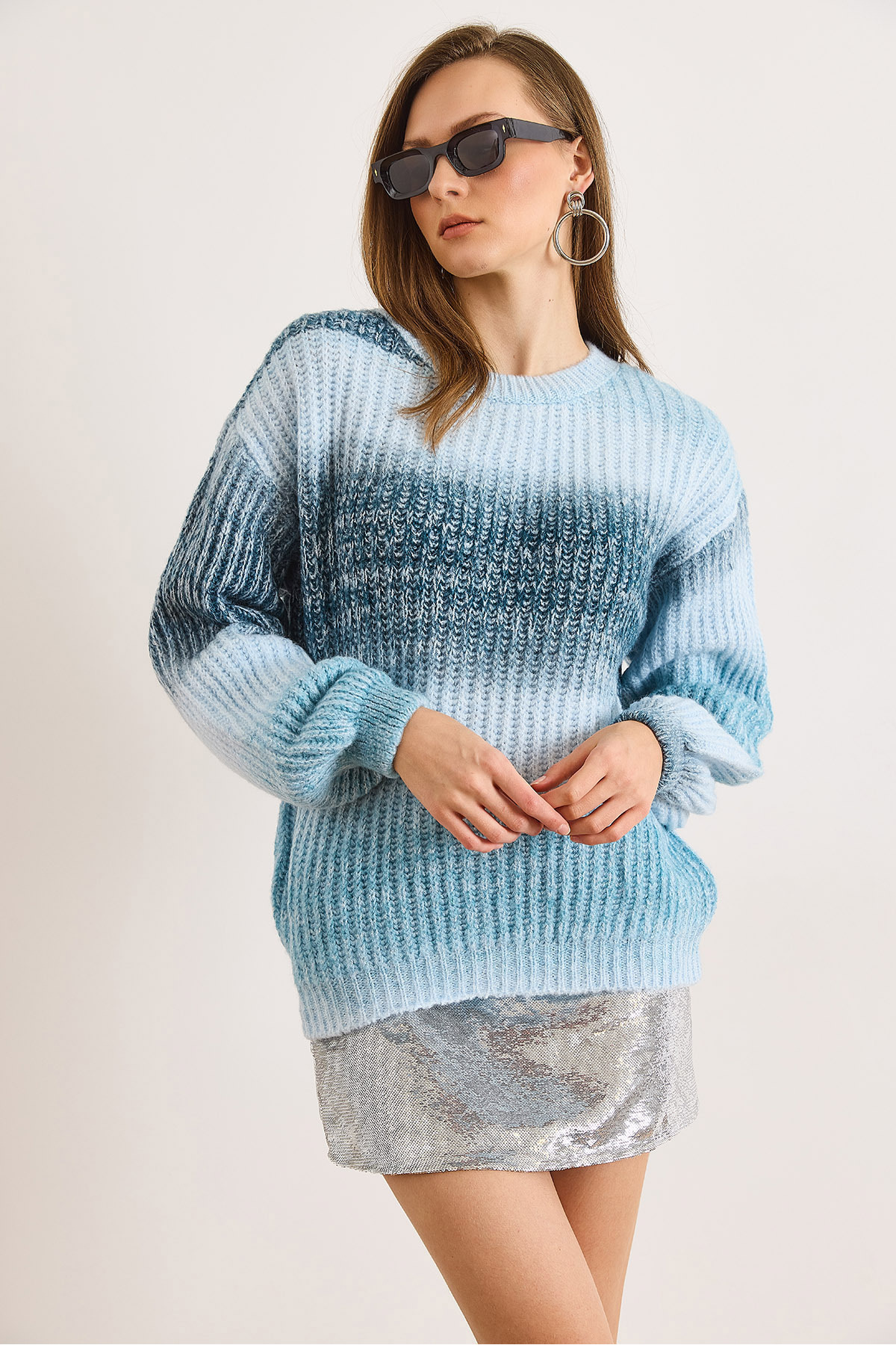 Kadın Mavi Bisiklet Yaka Degrede Triko Kazak KZK-19001049 Kadın Mavi Bisiklet Yaka Degrede Triko Kazak KZK-19001049 تک سایز