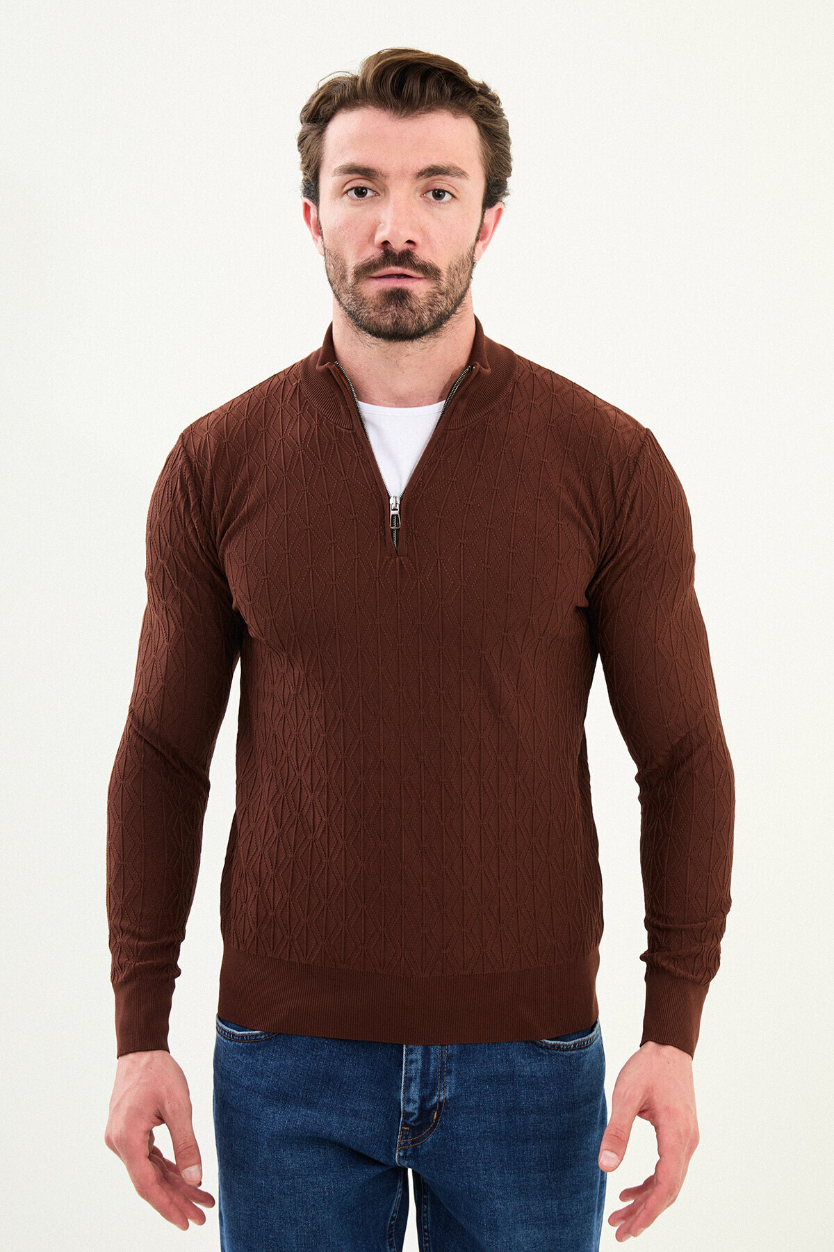 Düz Slim Fit Fermuarlı Polo Yaka Şönil Kumaş Erkek Triko Haki - 11576.25K Düz Slim Fit Fermuarlı Polo Yaka Şönil Kumaş Erkek Triko Haki - 11576.25K 2XL