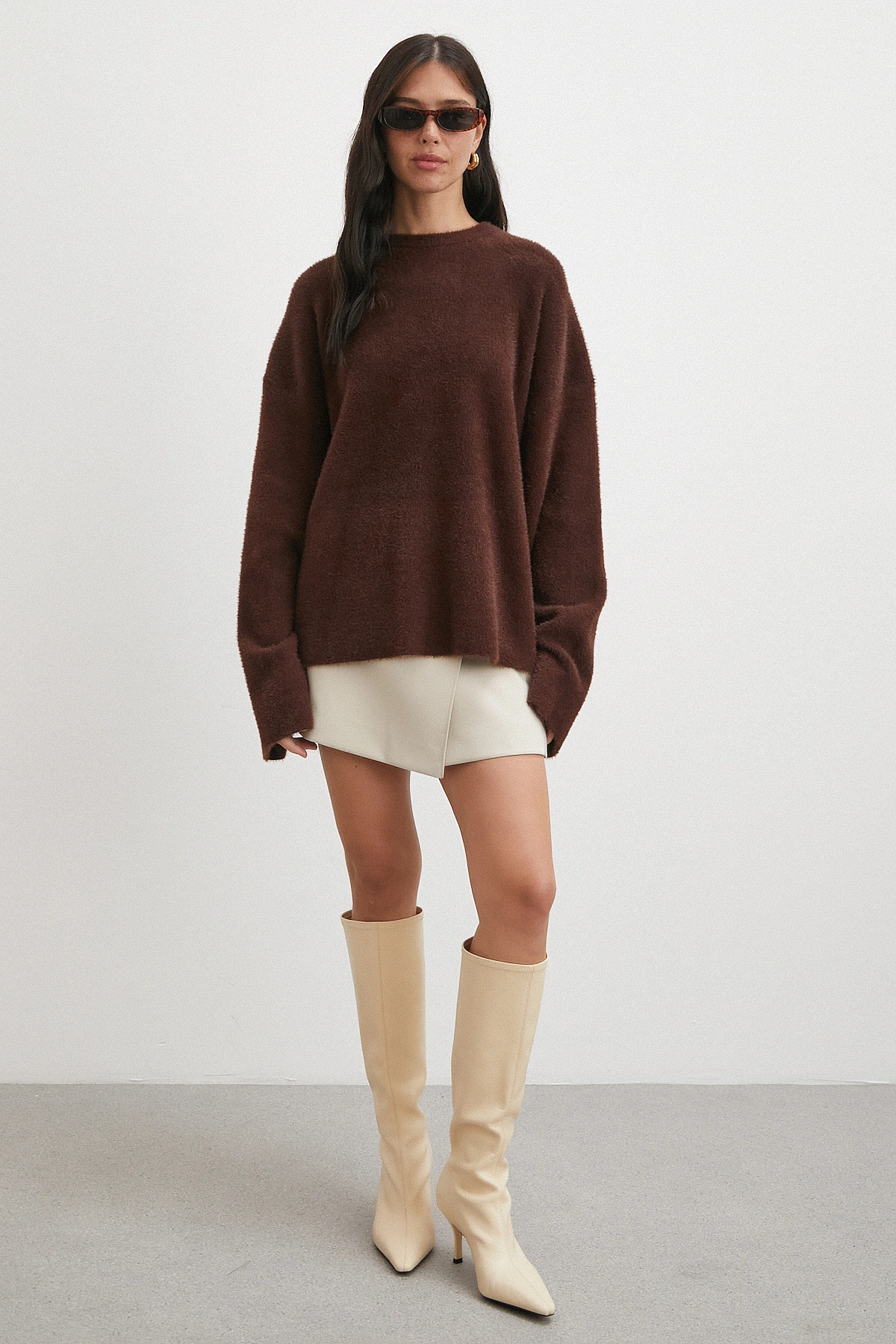Bisiklet Yaka T Kol Kazak Kahve Bisiklet Yaka T Kol Kazak Kahve RY25W700102 Standart