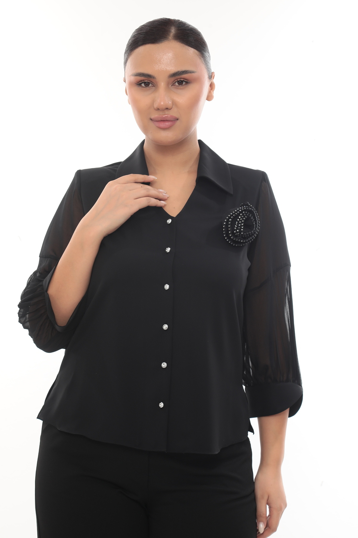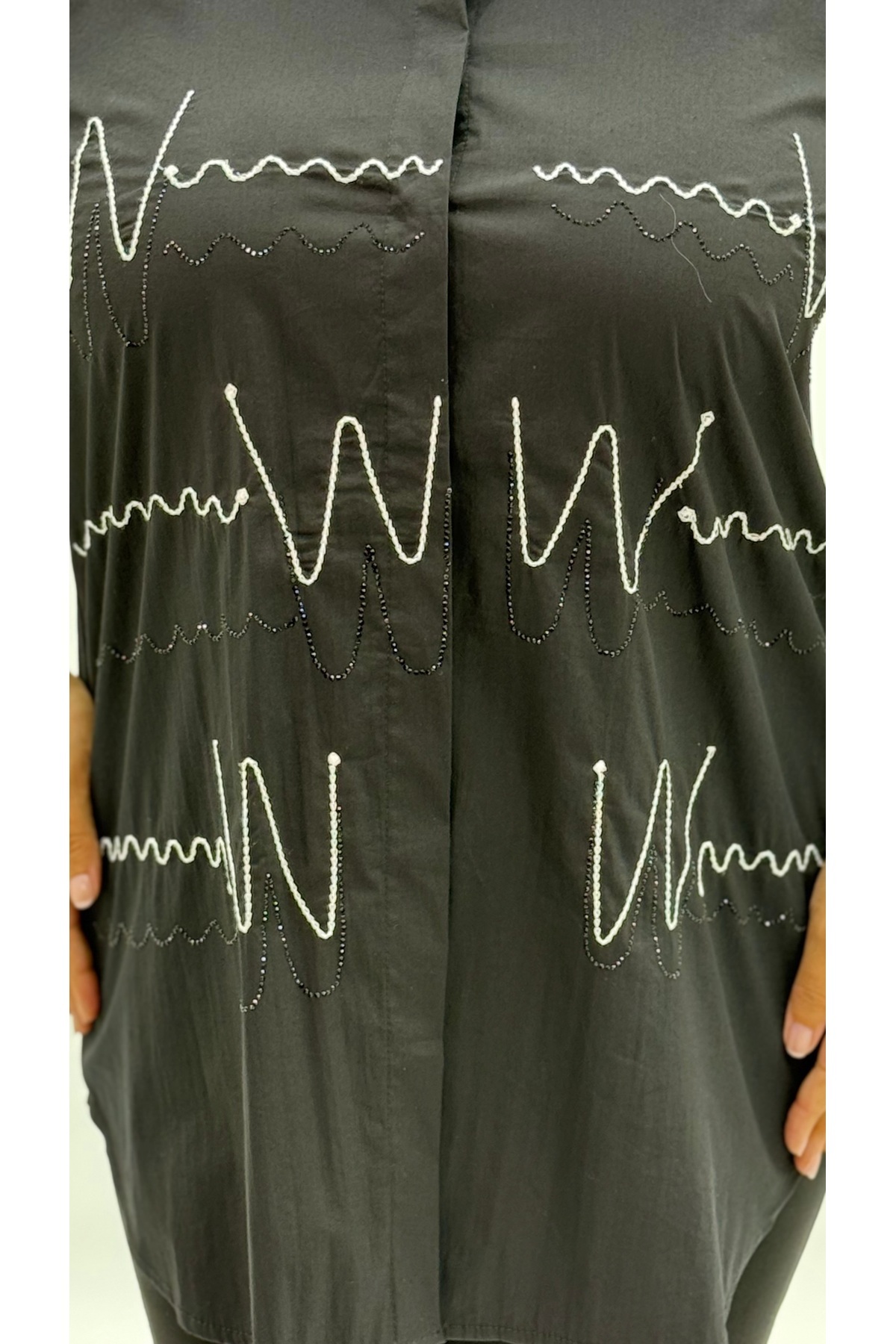 Büyük Beden Düğmeli Taşlı Uzun Kol Oversize Kadın Gömlek Büyük Beden Düğmeli Taşlı Uzun Kol Oversize Kadın Gömlek 22286 48