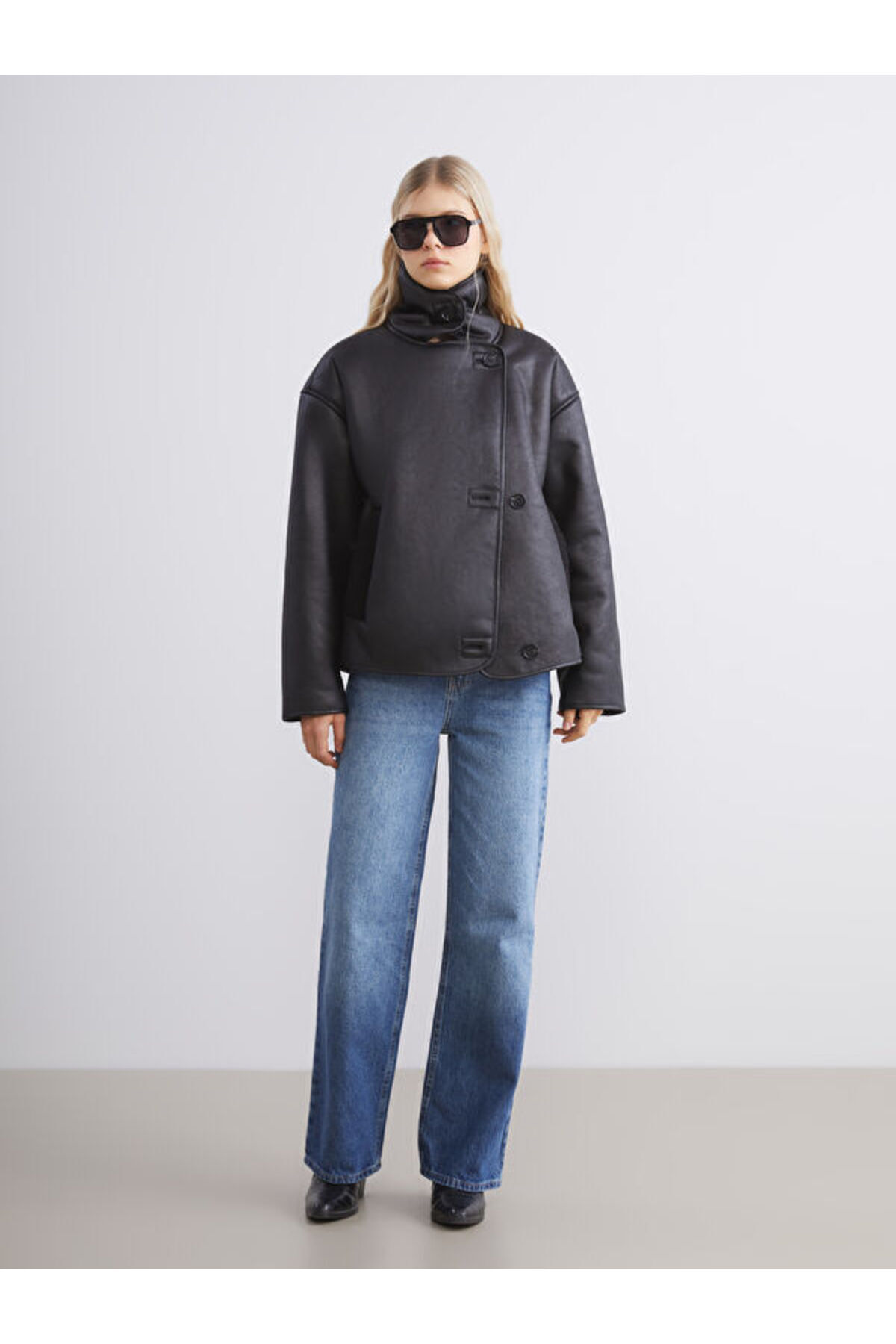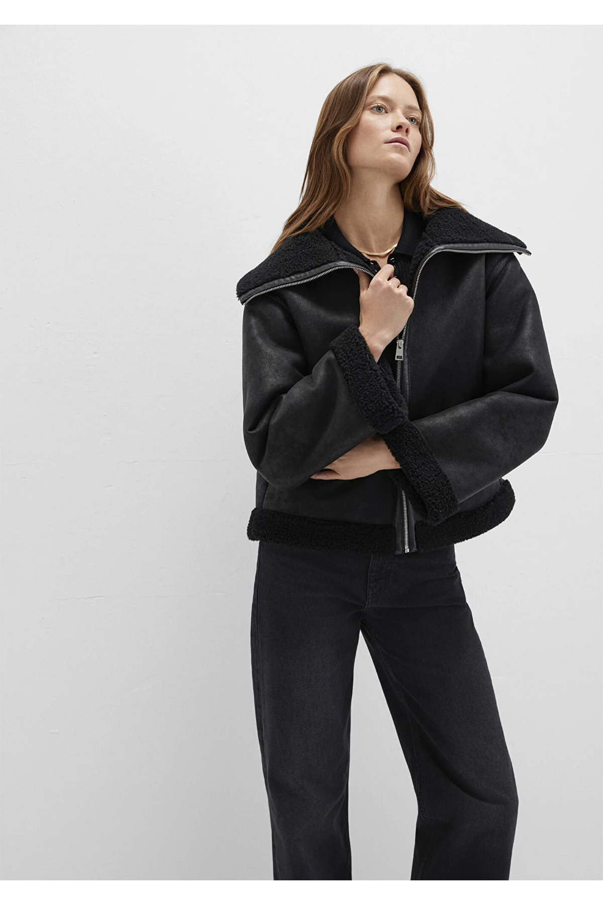 Pelüş Biker Yaka Kadın Süet Mont Pelüş Biker Yaka Kadın Süet Mont W5DP47Z8-Liwensa XL