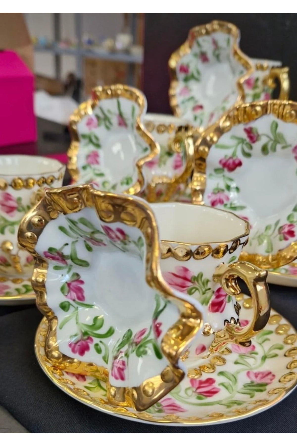 ESTERHOMEDECOR 6 Kişilik el boyama porselen kahve fincan takımı ESTERHOMEDECOR 6 Kişilik el boyama porselen kahve fincan takımı 7283920202 تک سایز