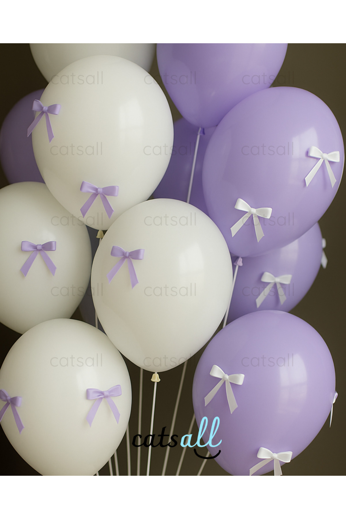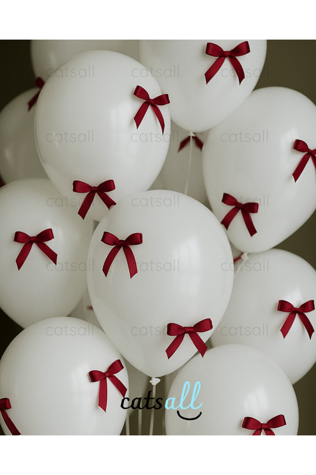 🎀 Fuşya Pembe Beyaz Kurdeleli Balon Seti 🎈 (10 Balon + 30 Yapışkanlı Kurdele) CATSKURDELEBALON