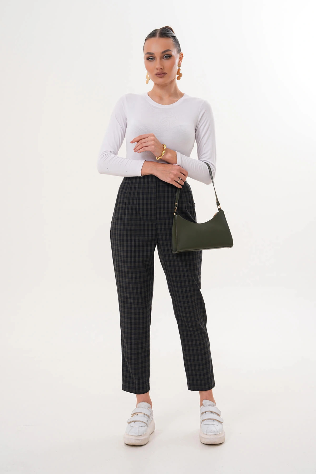 Kadın Lacivert Kareli Yüksek Bel Pens Detaylı Havuç Kesim Kumaş Pantolon Kadın Lacivert Kareli Yüksek Bel Pens Detaylı Havuç Kesim Kumaş Pantolon MTC00841 XL