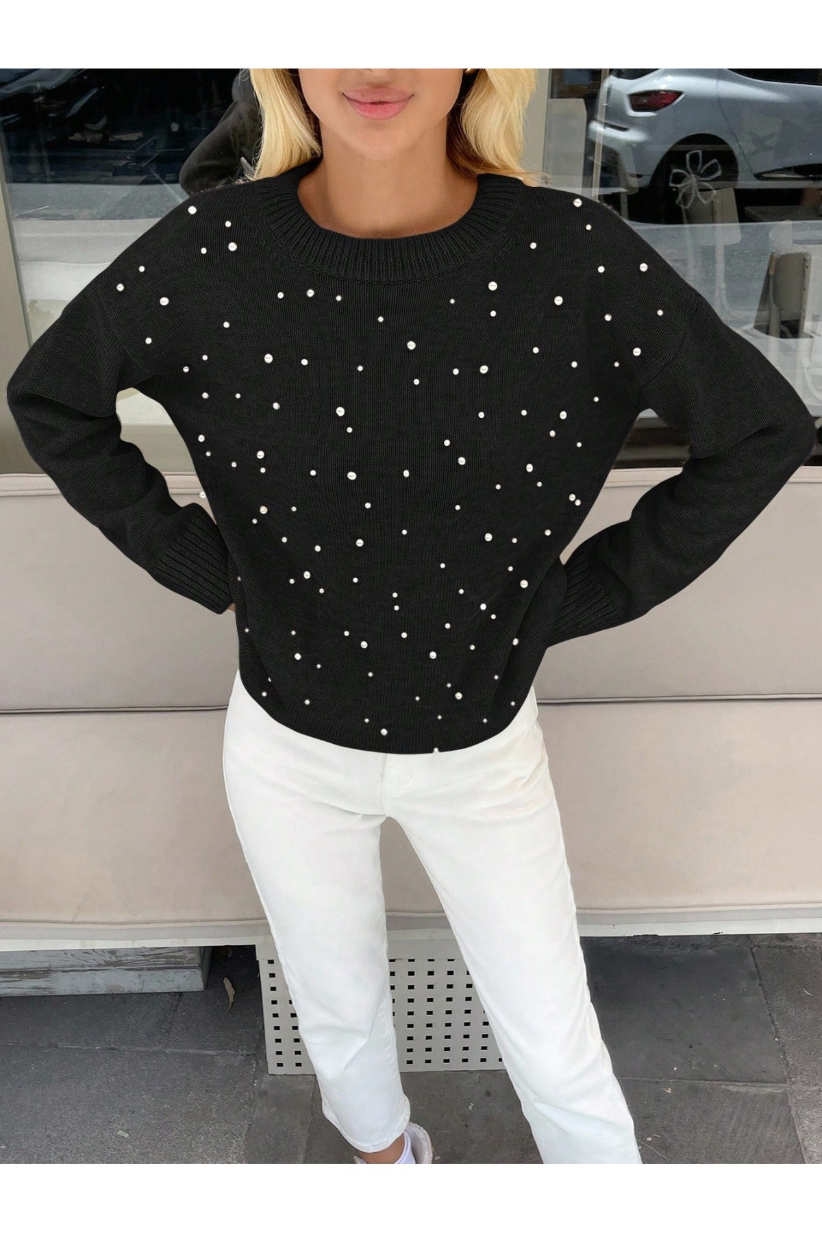 Bisiklet yaka inci detaylı triko kadın KAZAK Bisiklet yaka inci detaylı triko kadın KAZAK L