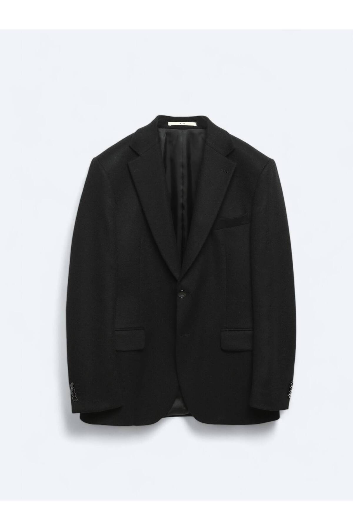 Siyah Düz Modern Fit Yün Karışımlı Ceket Siyah Düz Modern Fit Yün Karışımlı Ceket 52319 62