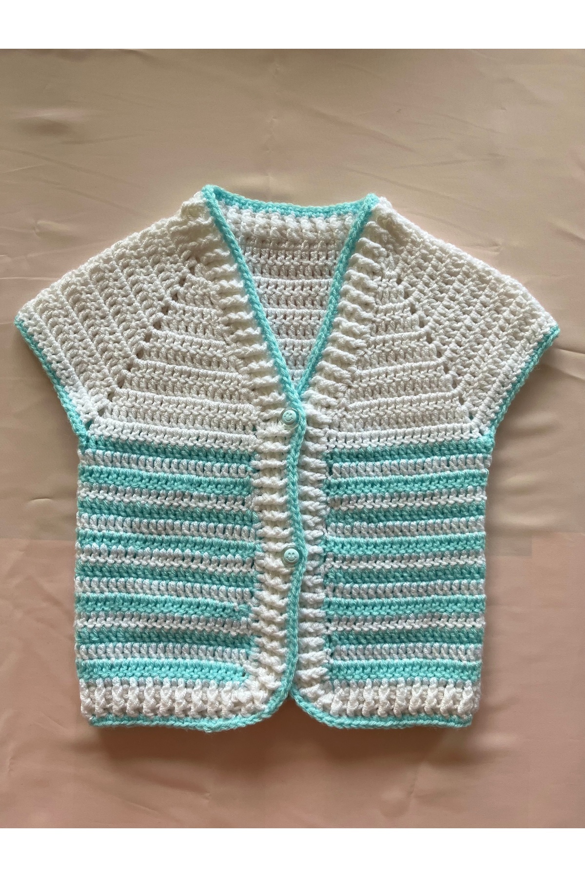 Yeşil Ajurlu El Örgüsü Bebek Yeleği Yeşil Ajurlu El Örgüsü Bebek Yeleği YAEÖBY Standart
