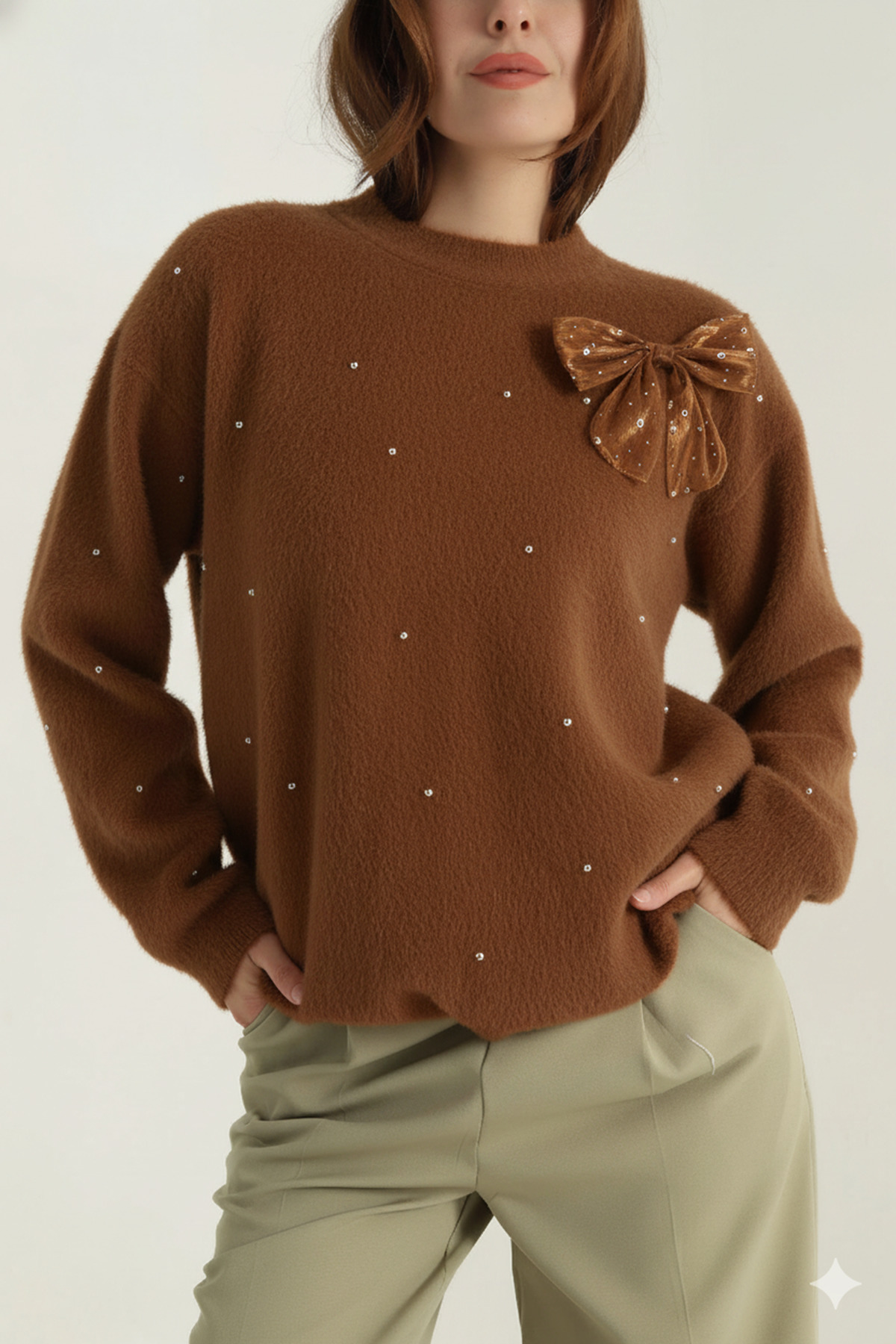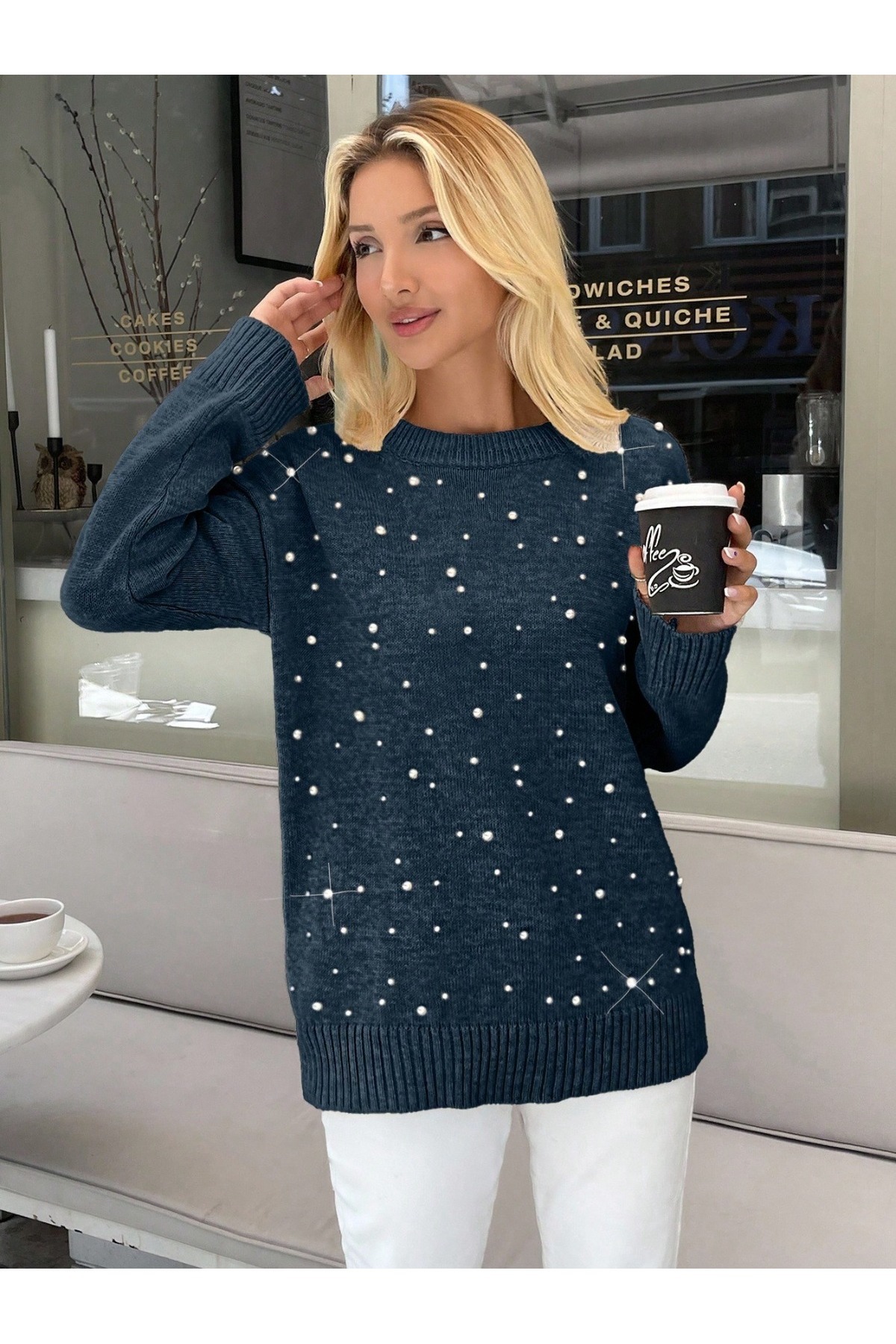 Bisiklet yaka inci detaylı triko kadın KAZAK Bisiklet yaka inci detaylı triko kadın KAZAK Triko kazak L