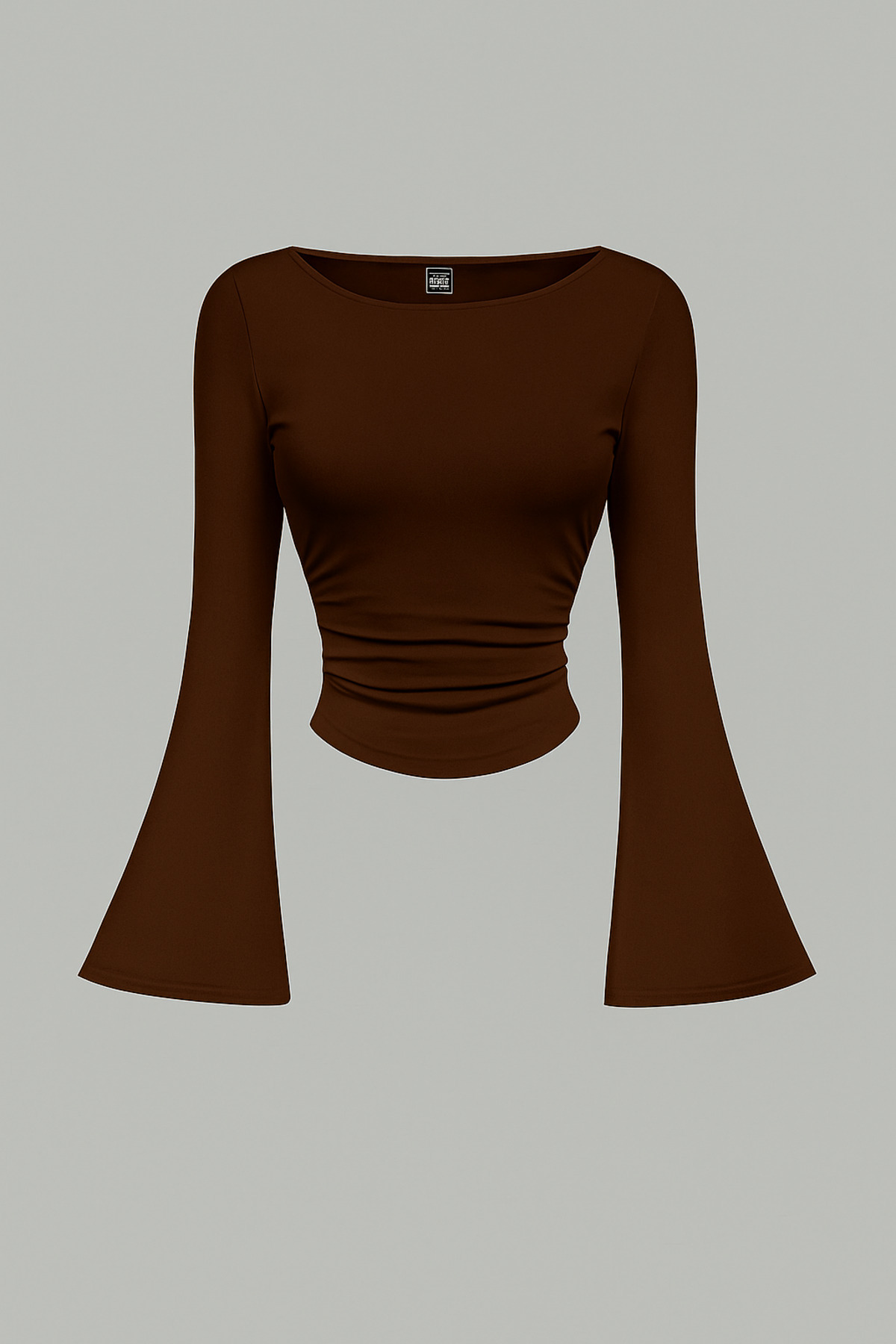 Koyu Kahve Kayık Yaka Uzun Kollu İspanyol Kol Bluz, Yan Büzgülü İspanyol Kol Kahve Crop Üst Koyu Kahve Kayık Yaka Uzun Kollu İspanyol Kol Bluz, Yan Büzgülü İspanyol Kol Kahve Crop Üst 2026-KIŞ-P04 XL