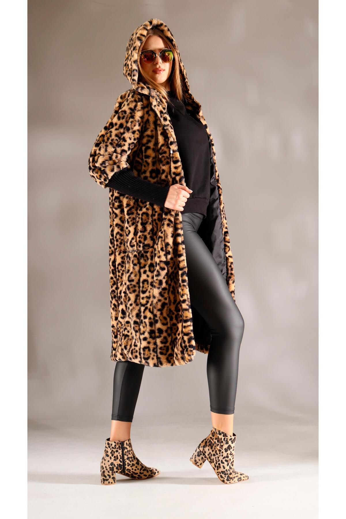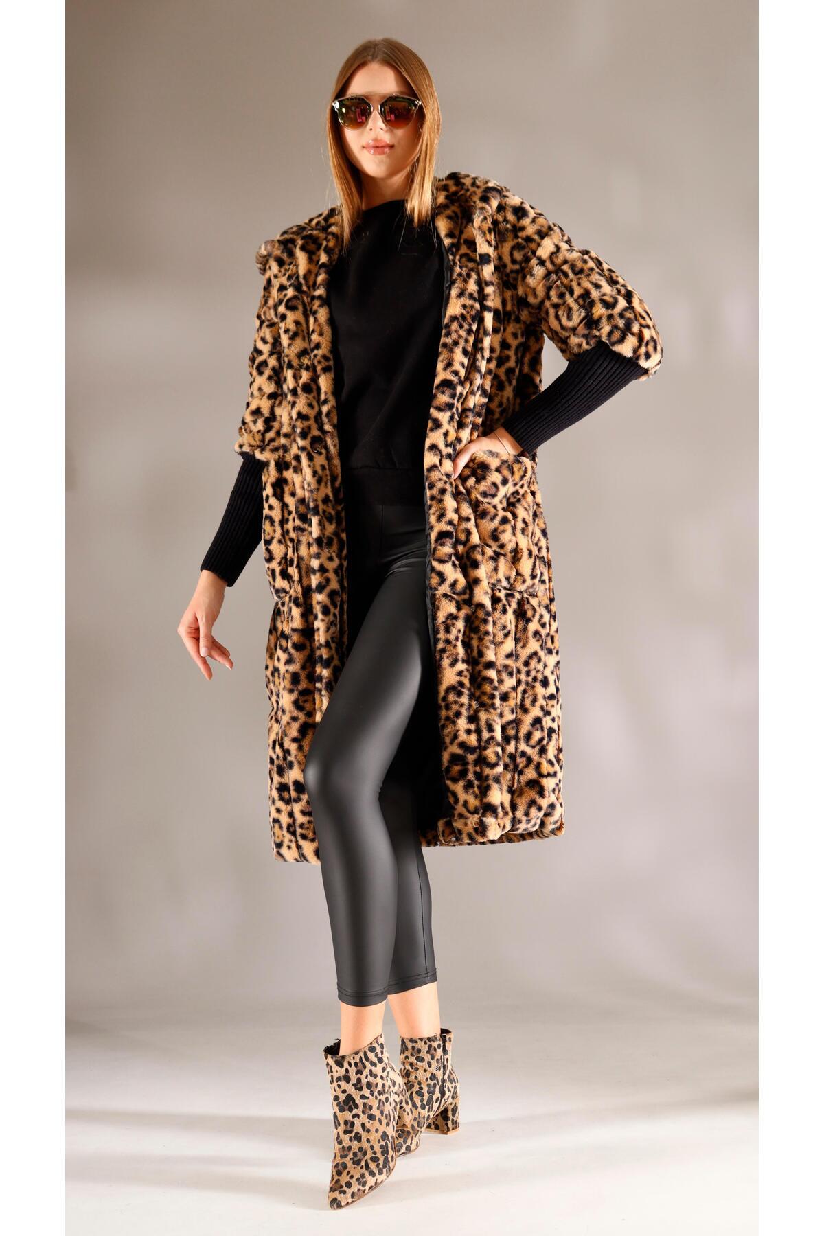 Kolları Trikolu Leoparlı Peluş Ceket Kolları Trikolu Leoparlı Peluş Ceket 1260 L