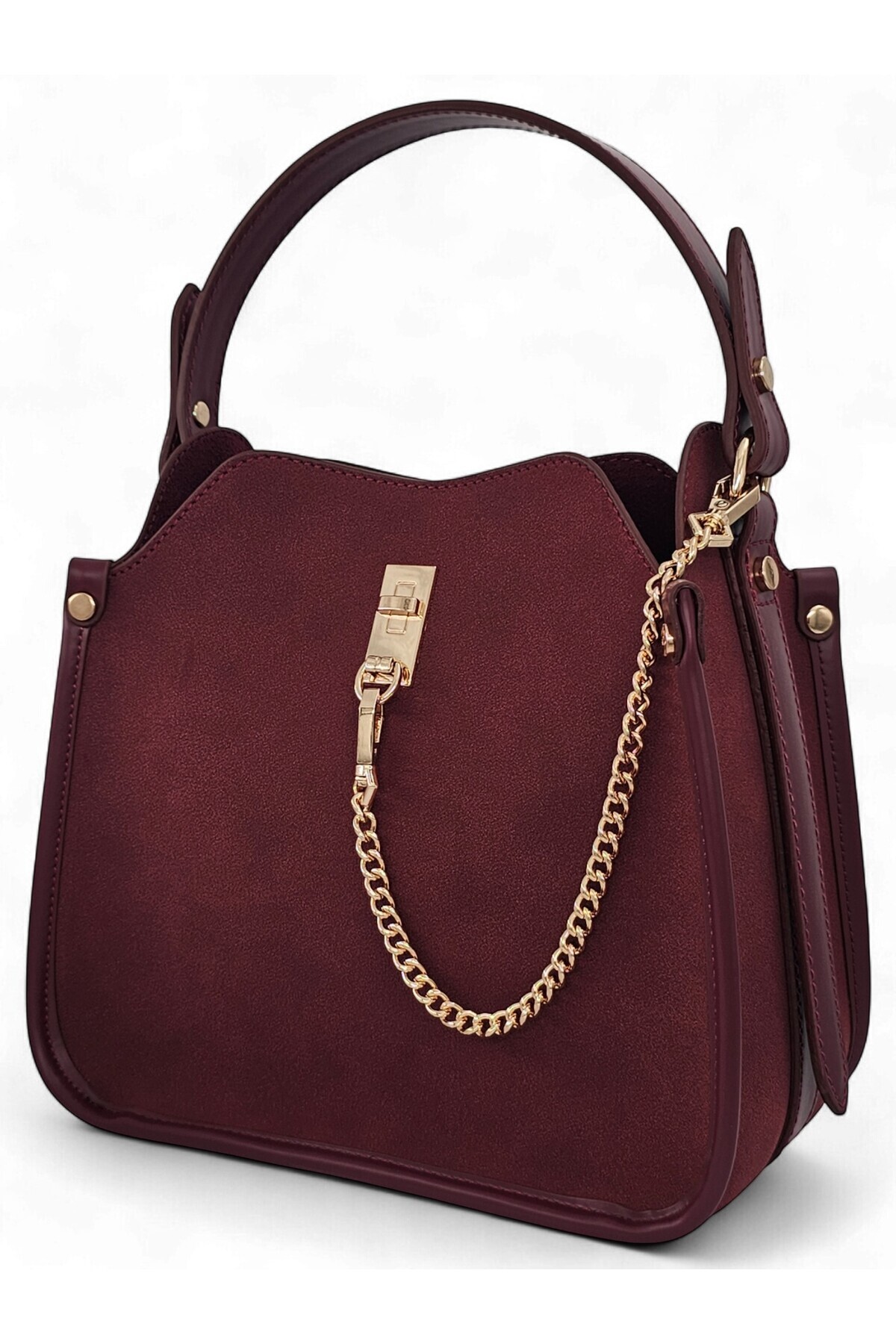 Bordo Nubuk Zincir Aksesuar Detaylı El & Omuz Kadın Çantası Bordo Nubuk Zincir Aksesuar Detaylı El & Omuz Kadın Çantası E-4575-nubuk تک سایز