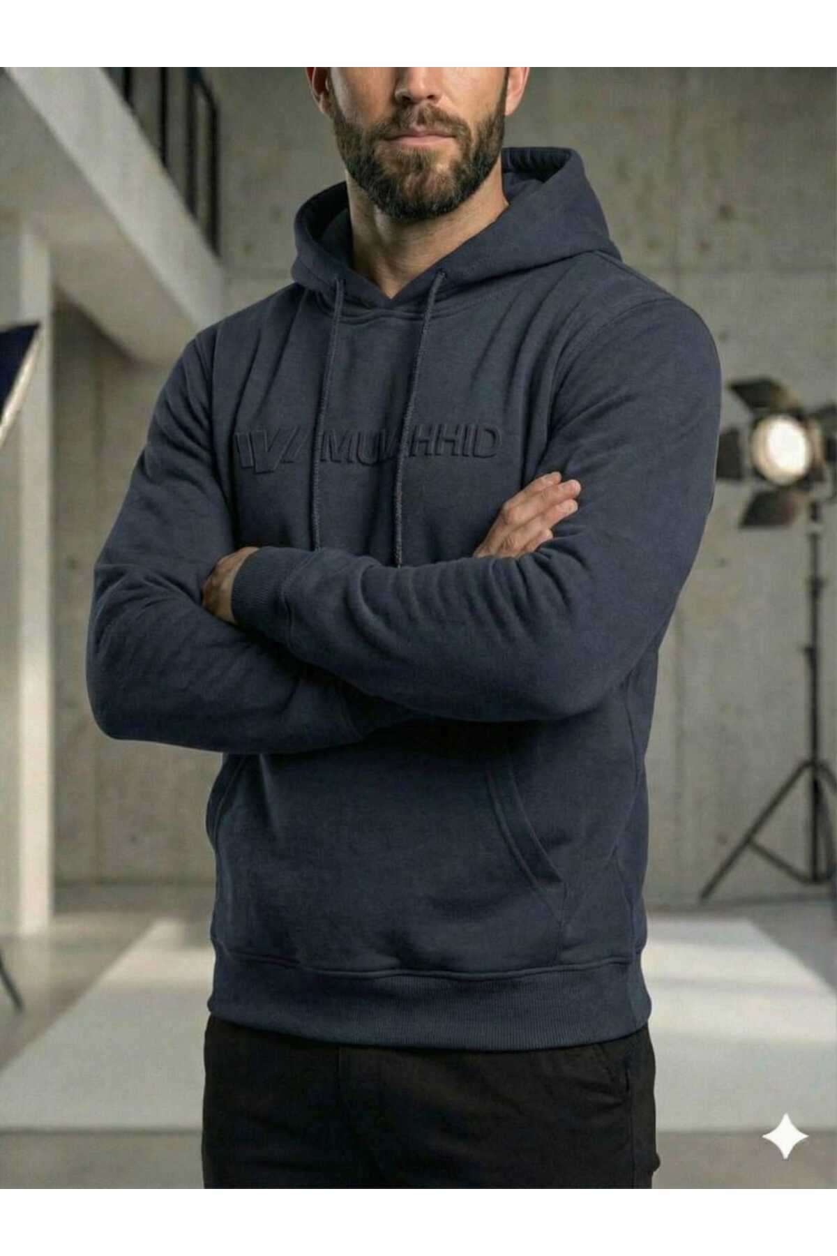 Kapüşonlu Lacivert Sweatshirt 3 İplik Şardonsuz Kapüşonlu Lacivert Sweatshirt 3 İplik Şardonsuz 20251114MUVAHHİD 2XL