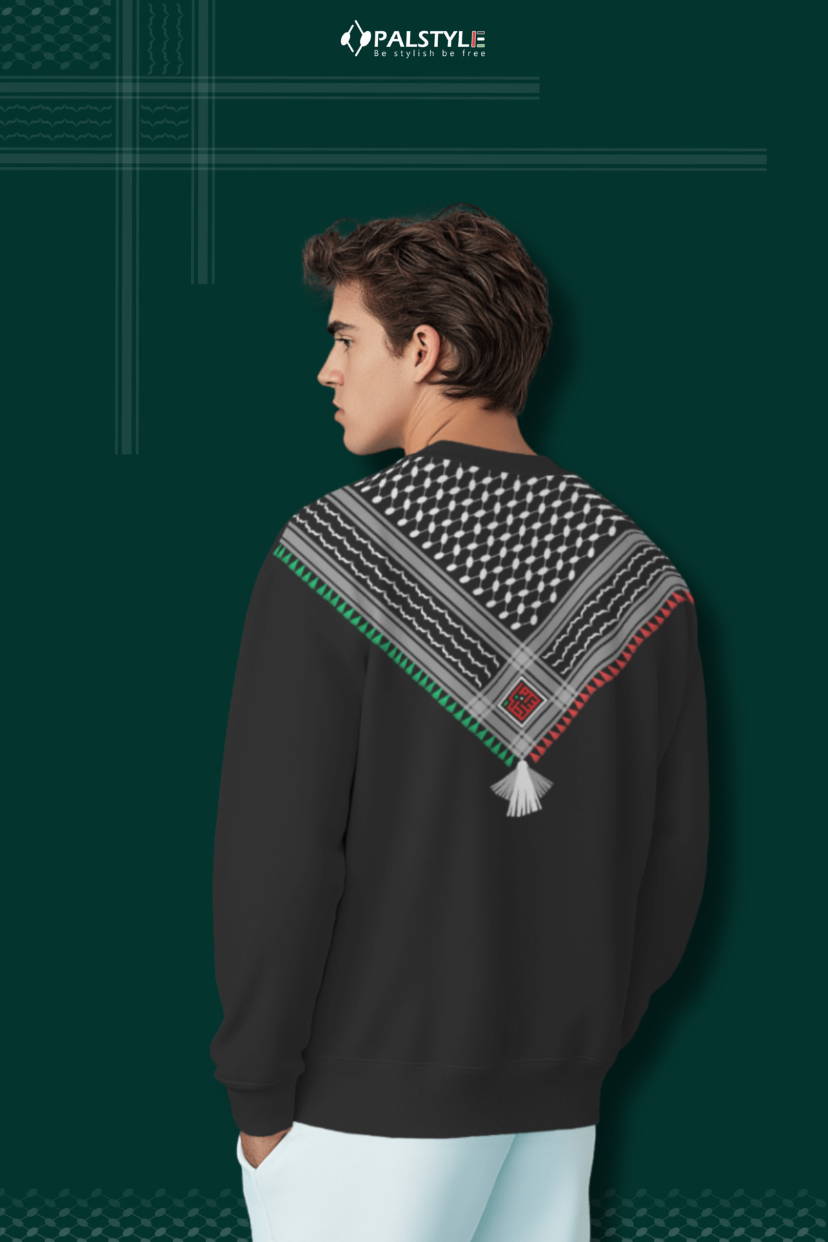 Filistin Keffiyeh Desenli Unisex Beyaz - Seyah Sweatshirt Oversize Filistin Keffiyeh Desenli Unisex Beyaz - Seyah Sweatshirt Oversize PLS-SWT-103 XL