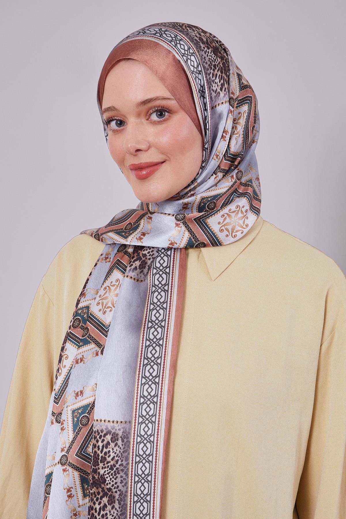 Taba Geometrik Desen Vual İpek Şal Taba Geometrik Desen Vual İpek Şal FIV.VİŞ.0007 تک سایز
